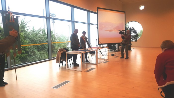 la processione a lago, la benedizione delle imbarcazioni e i fuochi d’artificio, ma San Vittore ha avuto la sua festa. Ieri la patronale verbanese s’è aperta al mattino con l’affollato –nonostante il maltempo– stand gastronomico dei Pacian da Intra, che hanno servito risott, luganiga e scigull, addolcendo la mattinata con la torta donata dalla Casa del dolce. Alle 18 il foyer del “Maggiore” ha accolto i due benemeriti verbanesi del 2019: Carlo Sada e Carlo Tacchini. Omonimi divisi da sessant’anni tondi di età (84 il primo, 24 il secondo) hanno in comune costanza e impegno. Il primo è una colonna della comunità di Fondotoce e del volontariato. È stato tra i promotori della protezione civile di cui è ancora attivo protagonista. Il secondo è uno sportivo (arruolato nel gruppo sportivo della polizia: le Fiamme Oro) la cui carriera è decollata negli ultimi anni portandolo a essere il primo canoista italiano della specialità canadese a qualificarsi per le Olimpiadi e a lottare ai vertici mondiali di questa specialità. A consegnar loro la benemerenza sono stati, ieri, il presidente del Consiglio comunale Pier Giorgio Varini e il sindaco Silvia Marchionini. Varini ha ricordato che, come accadde l’anno scorso per Arialdo Catenazzi e il medico Luca Giovanella, la scelta dei capigruppo consiliari è caduta su due persone che rappresentano il presente e il futuro di Verbania in un’ideale passaggio di consegne generazionale. Per la città è anche un riconoscimento nel solco della tradizione. La benemerenza è già andata in passato a un volontario della protezione civile (il compianto Dario Sada, cugino di Carlo) e un canoista, il campione olimpico Beniamino Bonomi, che è peraltro il tecnico di Tacchini. Scroscianti applausi e commozione, anche da parte dei diretti protagonisti, hanno accompagnato la premiazione. Sada ha preferito non parlare lasciando all’amico e collega della protezione civile, Tullio Del Colle, il compito di dire due parole. “Mi ha fatto promettere che avrei parlato il giorno in cui se ne sarebbe andato. Ma per fortuna lo faccio oggi” – ha detto quest’ultimo, rimarcando l’umiltà e l’impegno alacre e silenzioso di Sada nei tanti luoghi delle emergenze nei quali ha operato in tanti anni.