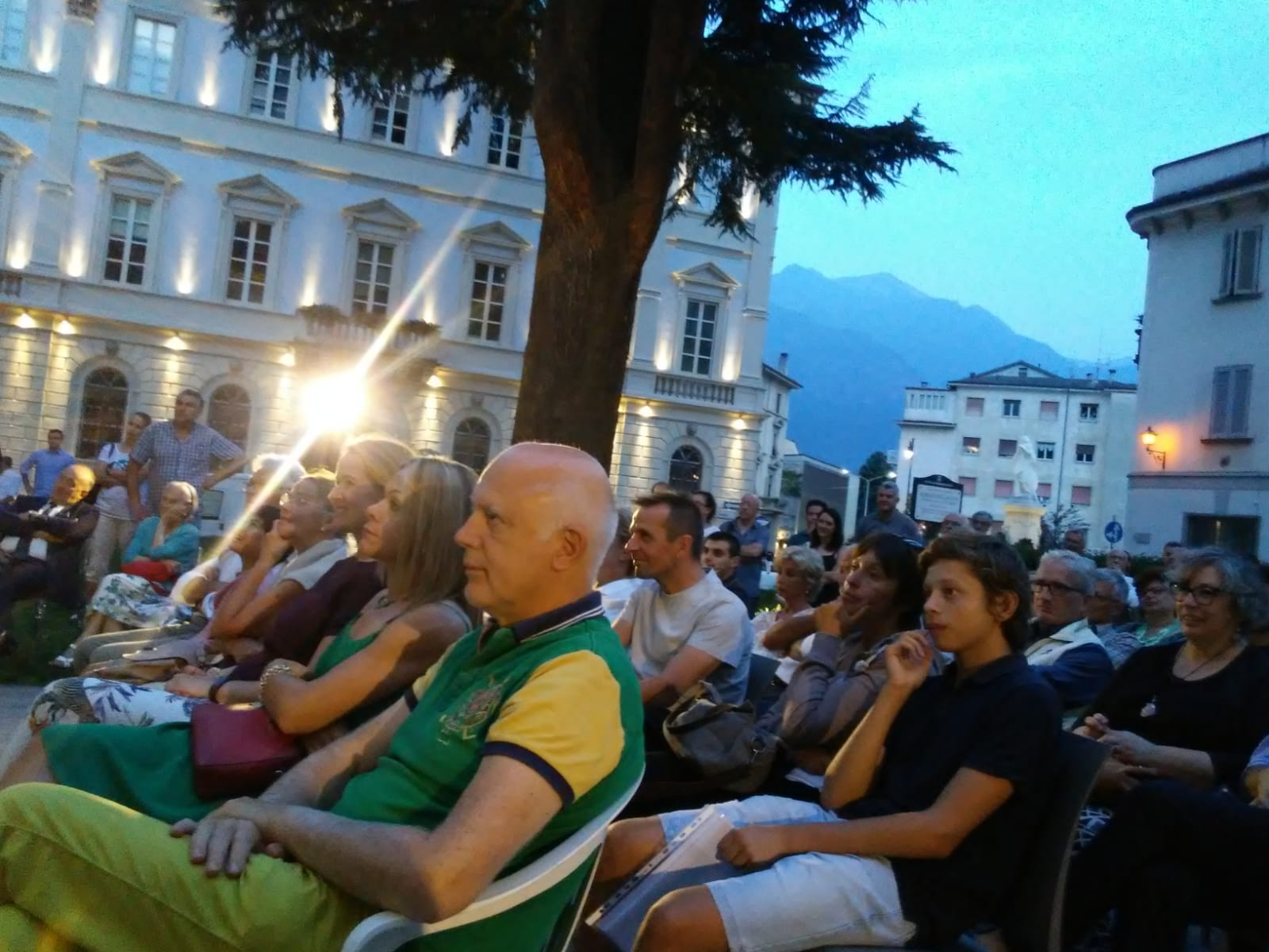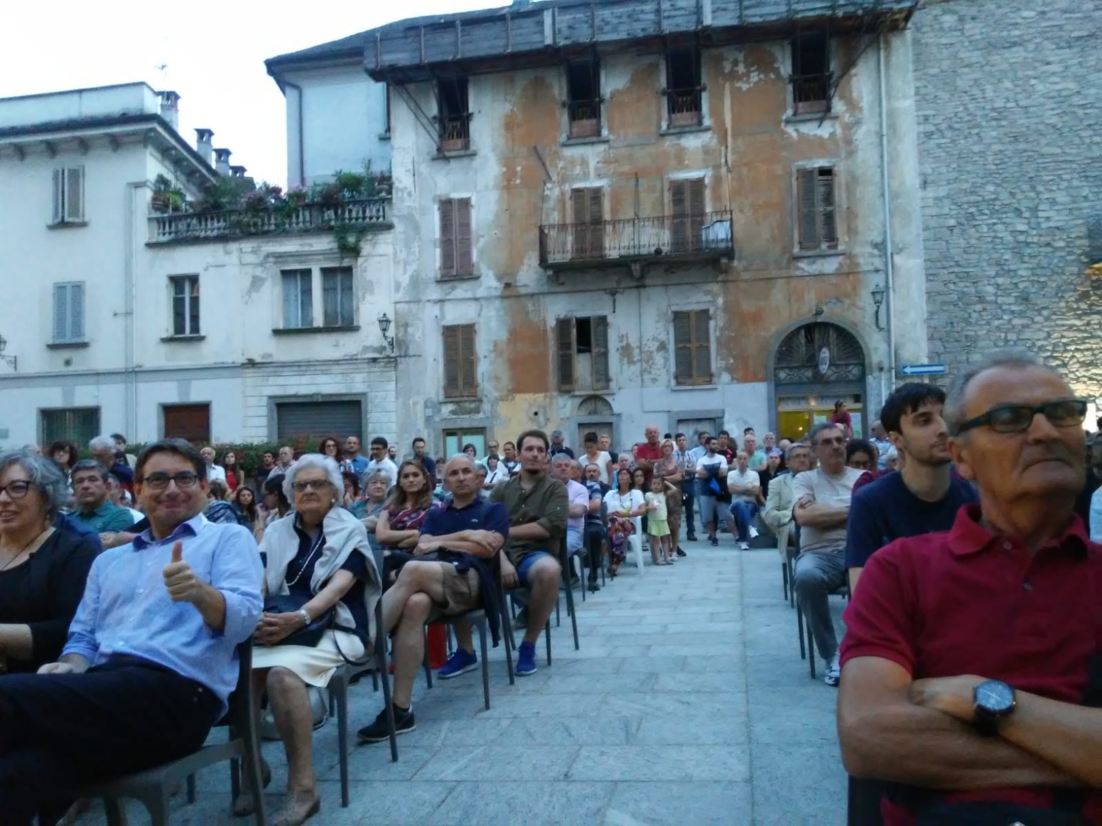 DOMODOSSOLA- 21-07-2019- In tanti venerdì sera in piazza Rovereto hanno partecipato all'incontro "Colloqui sull' Universo " organizzato da Ars. Uni.Vco nell'ambito della seconda edizione di Domoschool, International Alpine School of Mathematics and Physics. Special guest della serata lo scienziato ossolano dell'ESA ( Agenzia Spaziale Europea) Andrea Accomazzo che insieme al fisico milanese Marco Giammarchi, docente di fisica nucleare a Milano, ha portato la scienza fuori dalle aule scolastiche, intervenendo sul tema del futuro dell'esplorazione spaziale e sulla cosmologia. La serata, moderata dalla giornalista Cinzia Attinà, ha visto i saluti iniziali del vice sindaco Angelo Tandurella e la presenza di Sergio Cacciatori, scienziato ossolano curatore di Domoschool. Accomazzo a proposito della missione spaziale "Beyond" in corso adesso, spiega: " trovo molto significativo che Luca ( Parmitano) sia partito verso la stazione spaziale, nella ricorrenza dei cinquant'anni dallo sbarco sulla luna, che rimane la pietra miliare dell'esplorazione e dell'ardimento umano. Come ESA ci stiamo espandendo anche nell' esplorazione robotica. In particolare stiamo lavorando coi colleghi americani sulla nuova stazione spaziale: la costruiremo intorno alla luna e permetterà agli astronauti di andare sulla luna e da lì forse un giorno di assemblare l'astronave che ci porterà su Marte". E a proposito dei terrapiattisti, Accomazzo ha detto che dovrebbero essere i primi turisti spaziali e che dovremmo essere tutti contenti di far vedere loro come sia bella la nostra Terra così rotonda.