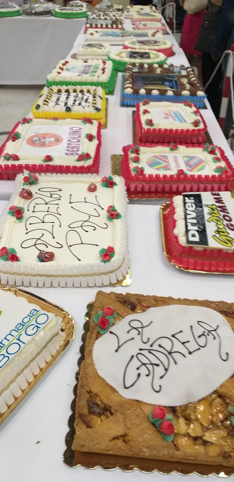 all'ippocastanp che ha dovuto cedere al peso dell nevicata di aprile tra le cento torte che hanno partecipato a Bognanco alla‘’Torteria 2019’’ lunedì nel Parco delle Terme. L’appuntamento, giunto alla 47^ edizione, è stato organizzato dalla Pro Loco, che ha poi assegnato i dolci ai presenti con uan lotteria. L'evento, come ha ricordato ai presenti dj Tanza ai microfoni, è nato quando Guido Prada, gestore del Rubino, organizzò la festa per sottolineare la dolcezza della moglie, "La Betti".