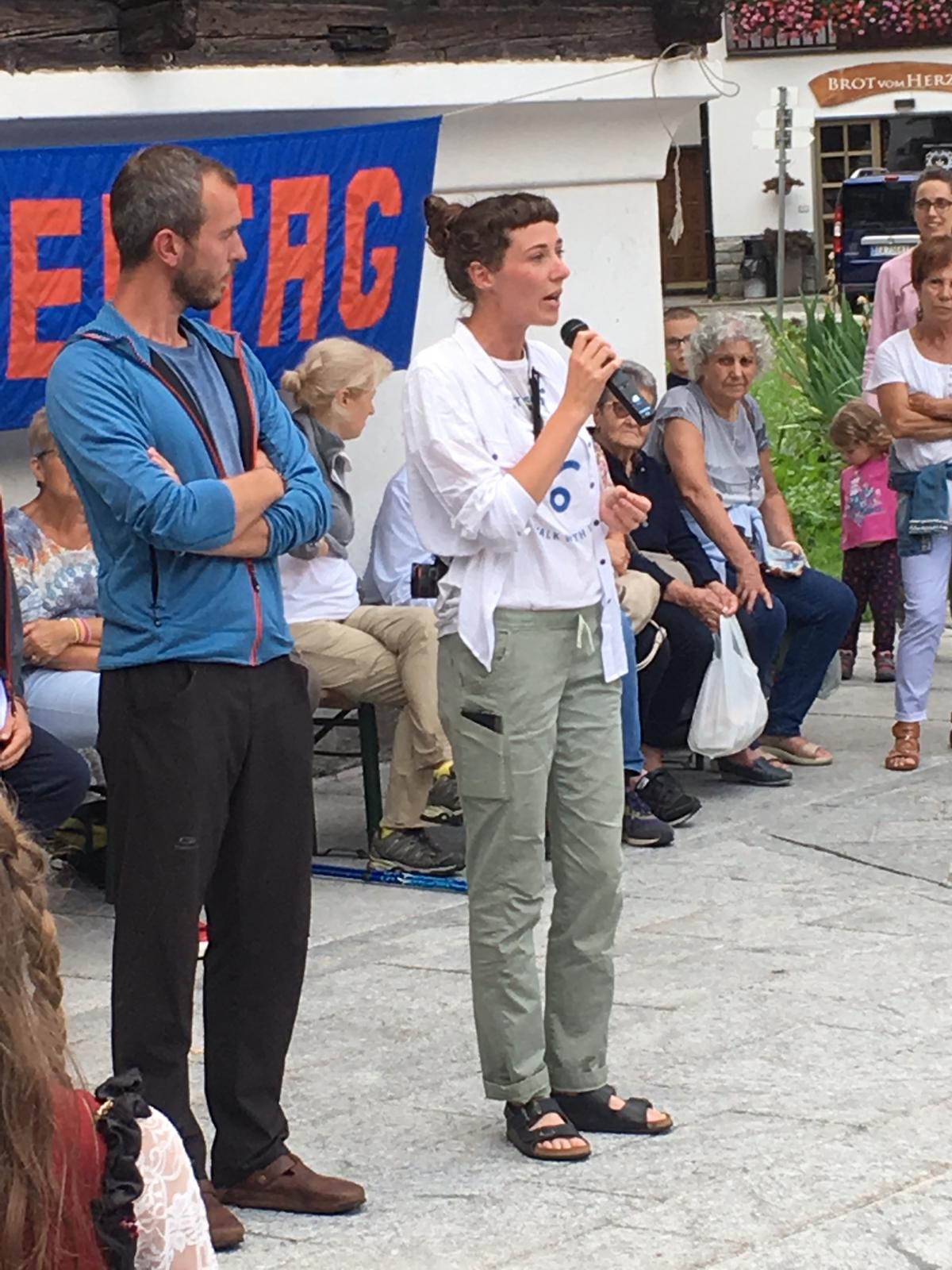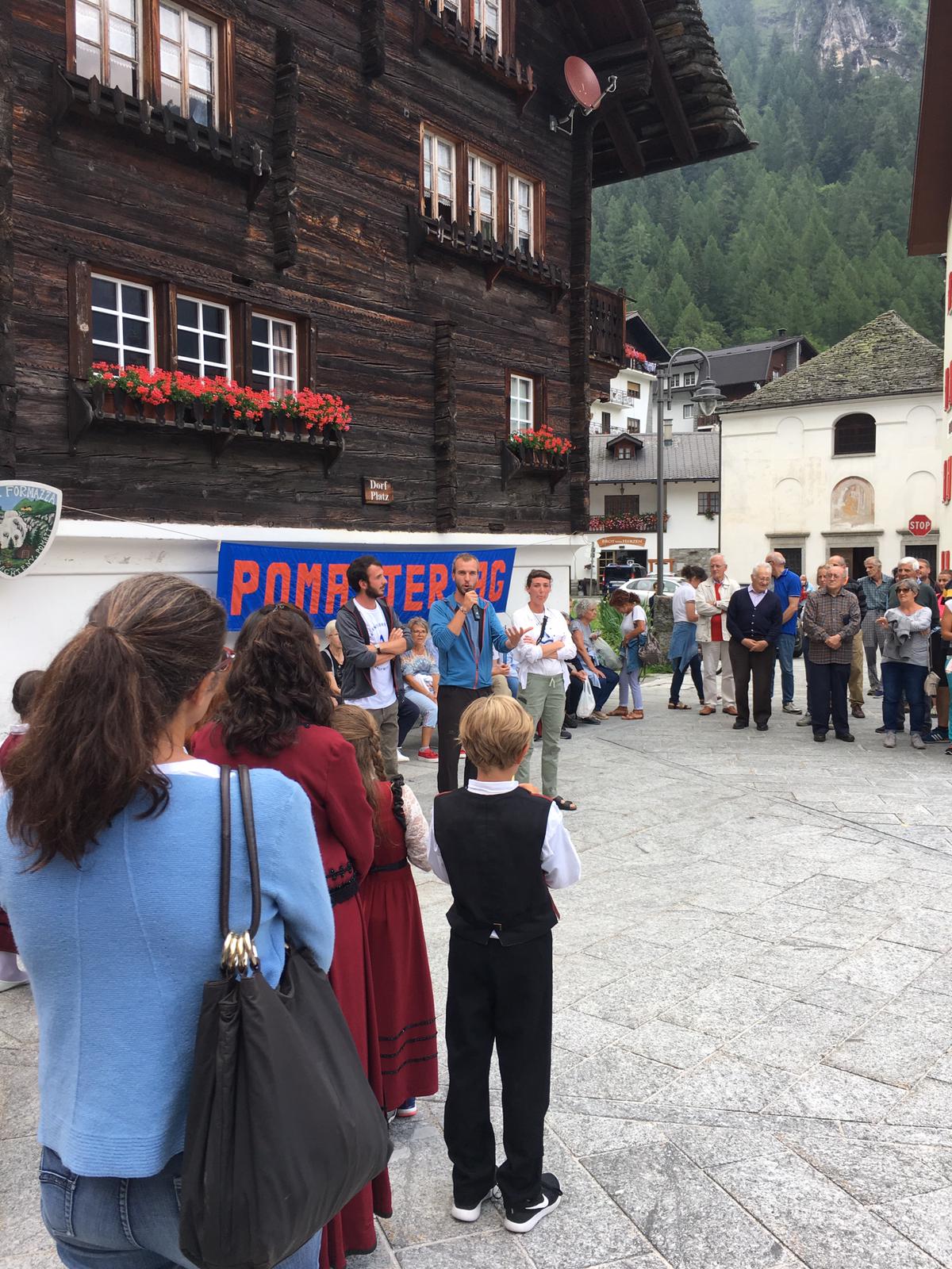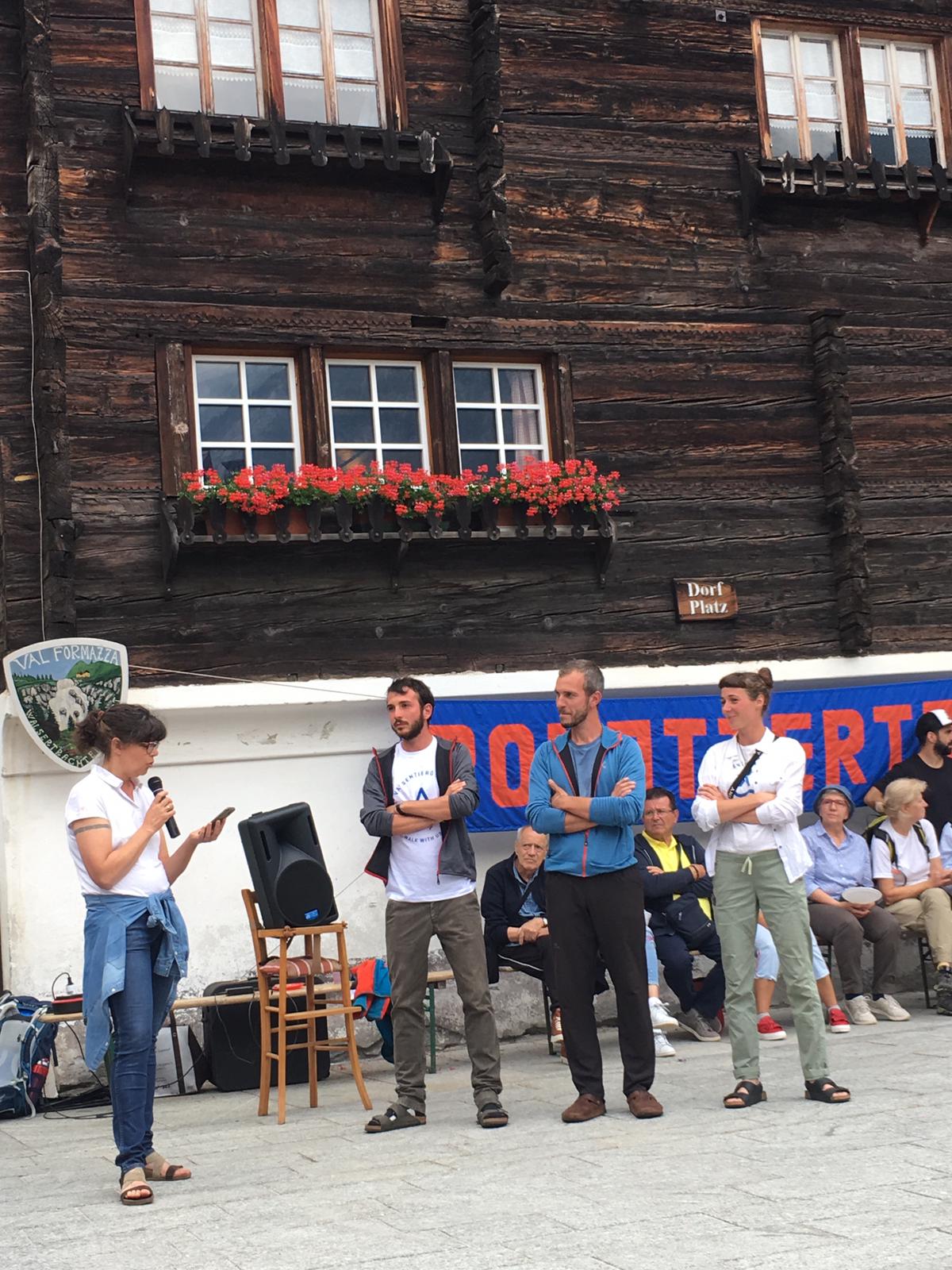 e dato il benvenuto, sabato scorso per il "Pomattertag", il pomeriggio dedicato alle tradizioni e cultura locale di Formazza. Il sindaco Bruna papa ha salutato così i camminatori del progetto "Va' Sentiero", una spedizione di giovani arrivata proprio quel giorno a Formazza, tappa del loro cammino lungo il "Sentiero Italia", il più lungo al mondo.