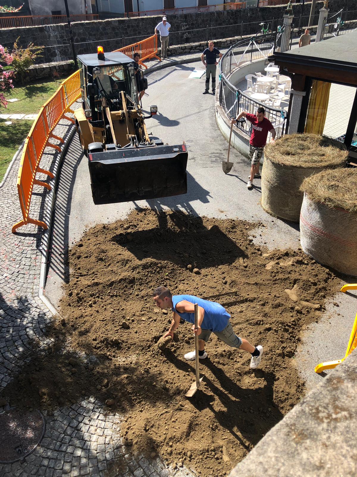 PREMOSELLO- 13-08-2019- Sono iniziati i lavori di preparazione del circuito del Palio Asini 2019 di Premosello. Da quest'anno il circuito su cui si sfideranno asini e fantini sarà interamente coperto di terra. Il Palio sarà, come da tradizione, il giorno di ferragosto, giovedì. Alle 16,30 ci sarà la Sfilata dei Cantoni, poi la gara individuale a cronometro delle 17,15. La corsa in linea con i dieci Cantoni in gara partirà alle 18. Il Palio di Premosello è nato nell'immediato dopoguerra, ed è una "manifestazione di carattere storico-culturale" della Regione Piemonte.