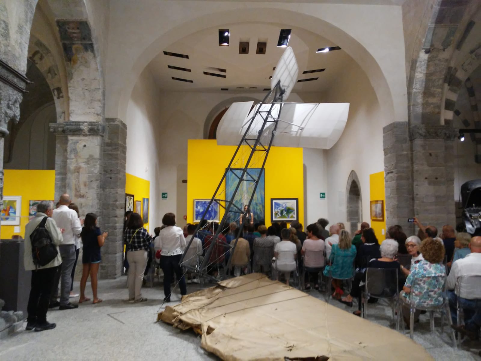 a Palazzo San Francesco nell'ambito di Oxilia, che conferma il sodalizio tra i Musei Civici di Palazzo San Francesco e il festival giunto alla seconda edizione. Tra i capolavori esposti della mostra " Balla- Boccioni - Depero. Costruire lo spazio del futuro", l'attrice Chiara Valli ha letto alcuni testi legati al mondo del futurismo, corrente artistica che ha lasciato un segno profondo nell'arte del Novecento. Il museo si è aperto così per la seconda volta a uno spettacolo teatrale proposto dal festival Oxilia: dopo Andrea Gattinoni che aveva portato in scena " La Tentazione di S. Antonio" è stata la volta dello spettacolo teatrale "Lettere dal Futurismo" . Sono stati letti brani di Gabriele D' Annunzio, legati al volo compiuto dal Vate su Vienna, ma anche la poesia che Giovanni Pascoli dedicò all'eroica impresa dell'aviatore peruviano Geo Chavez il quale nel 1910, sorvolò i cieli del Sempione e stralci dal Manifesto sul futurismo di Filippo Tommaso Marinetti. La Cappella Musicale del Sacro Monte Calvario e l' Associazione di Promozione Sociale Compagnia dell'Ozio nell' ambito della seconda edizione di Oxilia sono riusciti a organizzare un altro evento teatrale di grandi emozioni. Al termine delle letture di Chiara Valli, il conservatore dei musei civici di Domodossola, Antonio D' Amico, ha accompagnato le 108 persone presenti, nella visita guidata delle settanta opere in mostra. " È la prima volta che Palazzo San Francesco si apre all'arte a 360 gradi " ha detto D' Amico, particolarmente soddisfatto per l'esito della serata. Una collaborazione quella con Matteo Minetti, direttore del festival Oxilia e Adriano Alberti Giani, direttore della Cappella Musicale del Sacro Monte Calvario di Domodossola, destinata a proseguire con altri nuovi eventi.