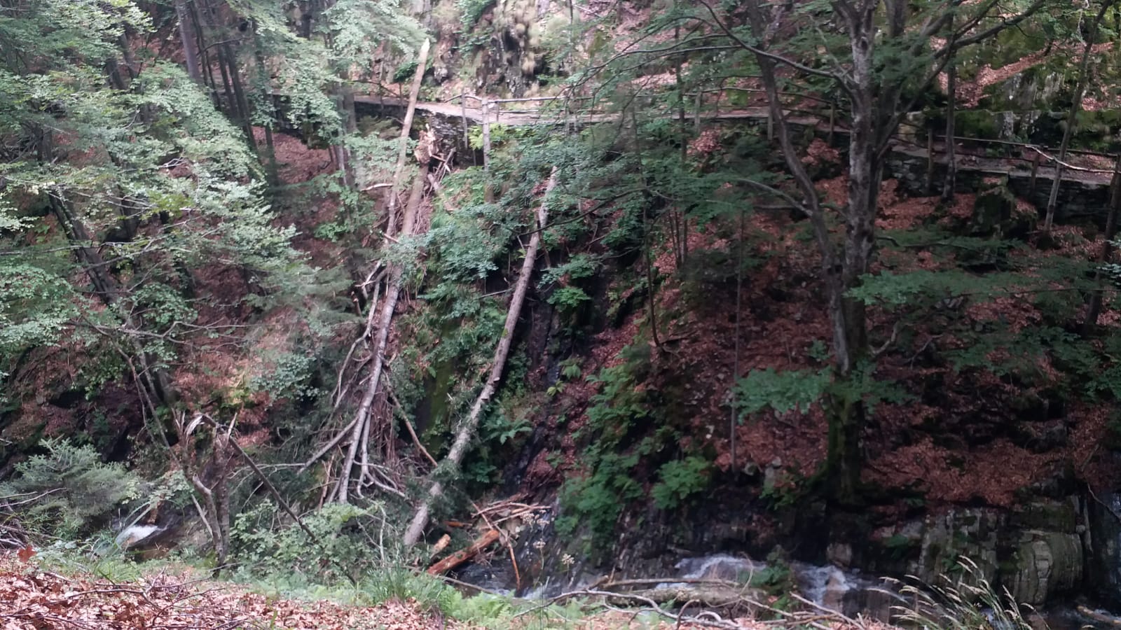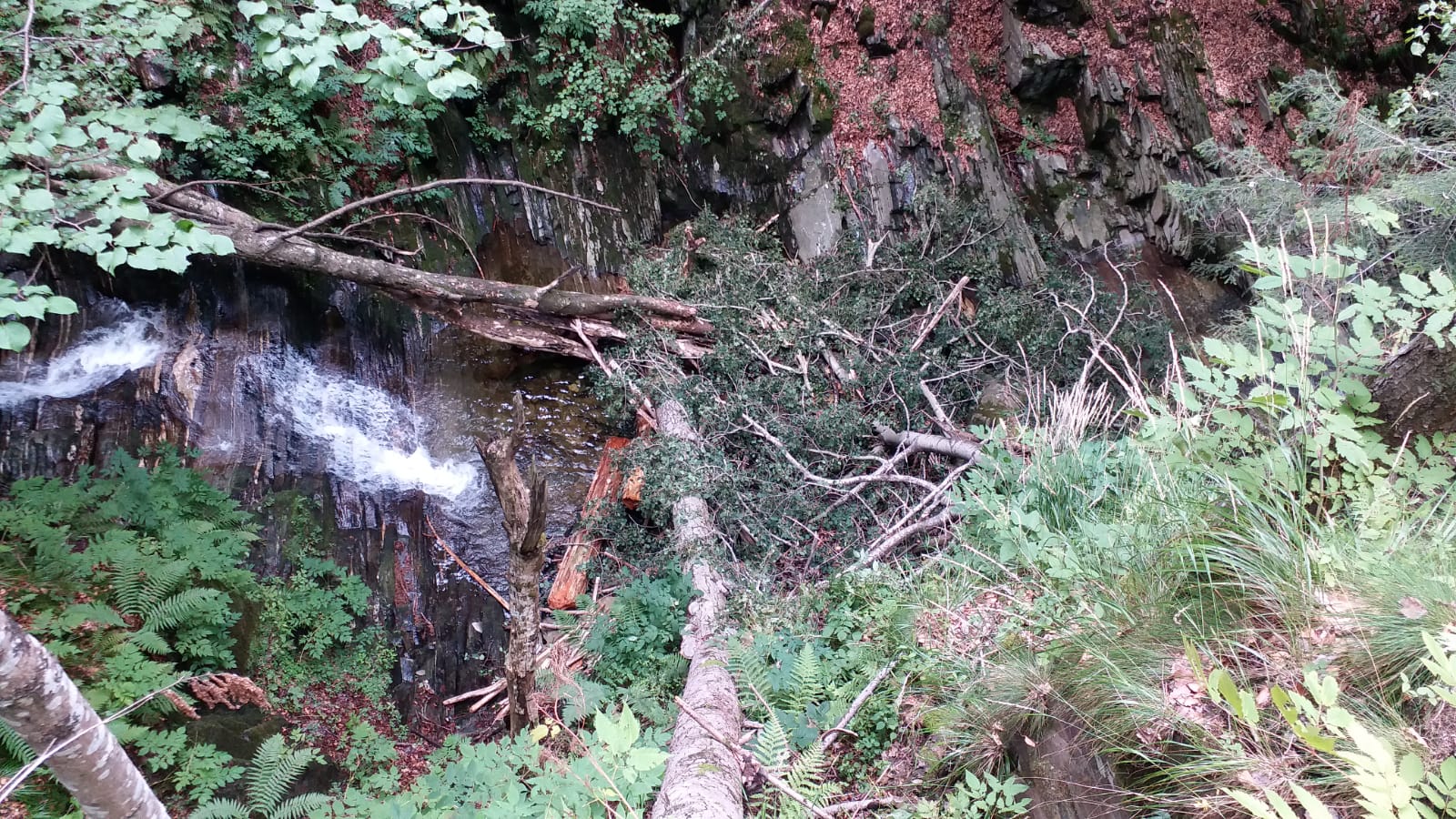 Il maltempo non ha impedito la salita in quota, anche se la caduta di alcune alberi ha divelto parte del parapetto del sentiero.