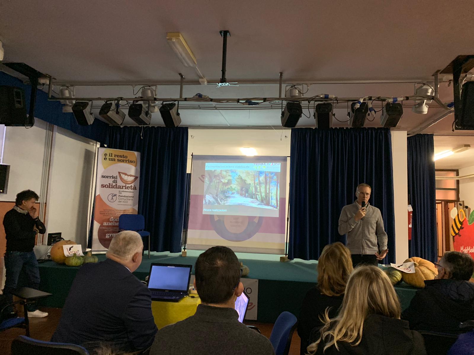 durante la sagra “Mele e Miele”, a Baceno è stato presentato il progetto “Devero per tutti” voluto da Rotary Club Pallanza - Stresa, Fondazione Comunitaria, Gsh Sempione 82 e Parco Veglia Devero. Alla presentazione della realizzazione di un percorso accessibile ai diversamente abili nella Piana del Devero sono intervenuti: il sindaco di Baceno Andrea Vicini, il vice, Stefano Costa, Ivano De Negri, direttore del Parco Veglia - Devero, la presidente del Rotary Club Pallanza-Stresa, Nicoletta Carboni e Maurizio De Paoli, presidente della Fondazione Comunitaria Vco, importante partner nel progetto. Al termine della presentazione il Gsh Sempione '82 ha mostrato l’uso della “joelette”, una carrozzella per sterrato che consente anche a chi ha difficoltà motorie di percorrere alcuni sentieri, evidenziando come questi mezzi siano a disposizione di tutto il territorio su prenotazione presso il Ciss Ossola e l’Unione Montana Alta Ossola.