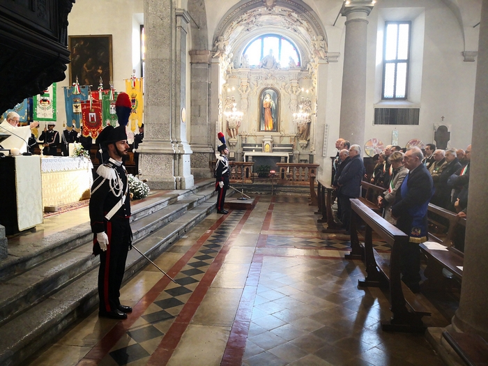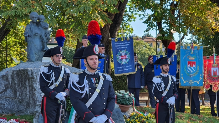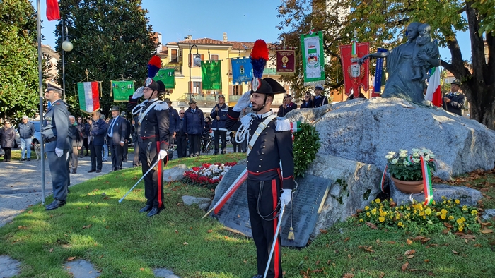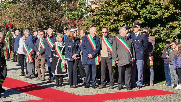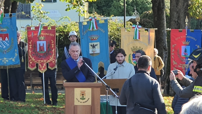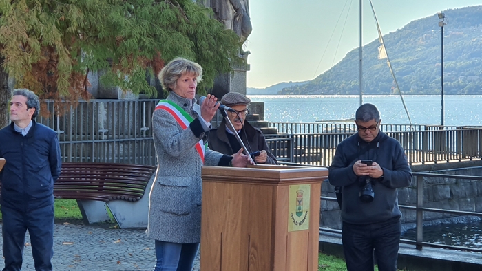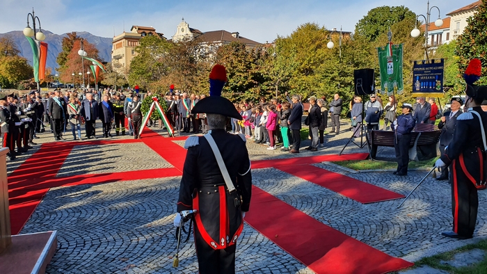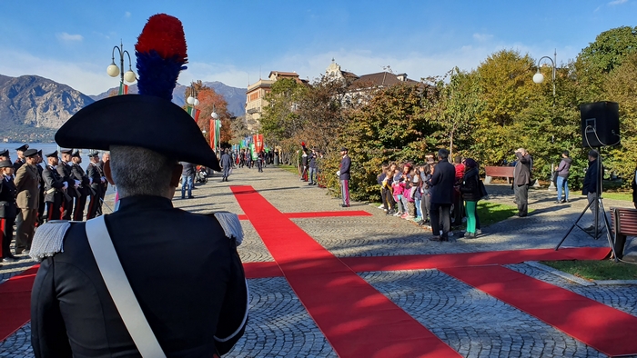 di studenti dell'istituto comprensivo Rino Monti Stella, col Tricolore appuntato al petto, alla cerimonia del IV novembre. I festeggiamenti provinciali per la Festa dell'Unità nazionale e delle Forze armate si sono tenuti stamane a Pallanza. Dopo la messa celebrata in San Leonardo, il corteo coi labari delle associazioni combattentistiche e d'arma e i gonfaloni di Comuni e Provincia sono sfilati sino al monumento ai Caduti del lungolago. Lì il prefetto Iginio Olita, il presidente dela Provincia Arturo Lincio e il sindaco di Verbania Silvia Marchionini hanno deposto la corona che ha reso omaggio ai caduti di guerra. Il ricordo di quanto accade un secolo fa, in parallelo con l'apprezzamento per la presenza dei giovani studenti, è stato il tema dell'orazione ufficiale di Rita Nobile, professoressa in pensione. “La storia è la materia delle materie”, ha detto legando alla narrazione degli eventi accaduti durante la Prima guerra mondiale il ricordo di due uomini della sua terra d'origine, Piazza Armerina, in provincia di Enna. Uno era il nonno, richiamato alle armi perché esperto tecnico di esplosivi, che nel Bellunese portò la sua conoscenza nella costruzione delle trincee di una guerra di posizione che fu terribile per i soldati. L'altro era il generale Antonio Cascino, un militare di carriera che nel guidare i suoi uomini alla conquista del Monte Santo, non si tirò indietro nonostante fosse stato ferito. Restò al suo posto e quella determinazione la pagò con la vita quando, a causa delle ferite infettatesi, morì di setticemia.