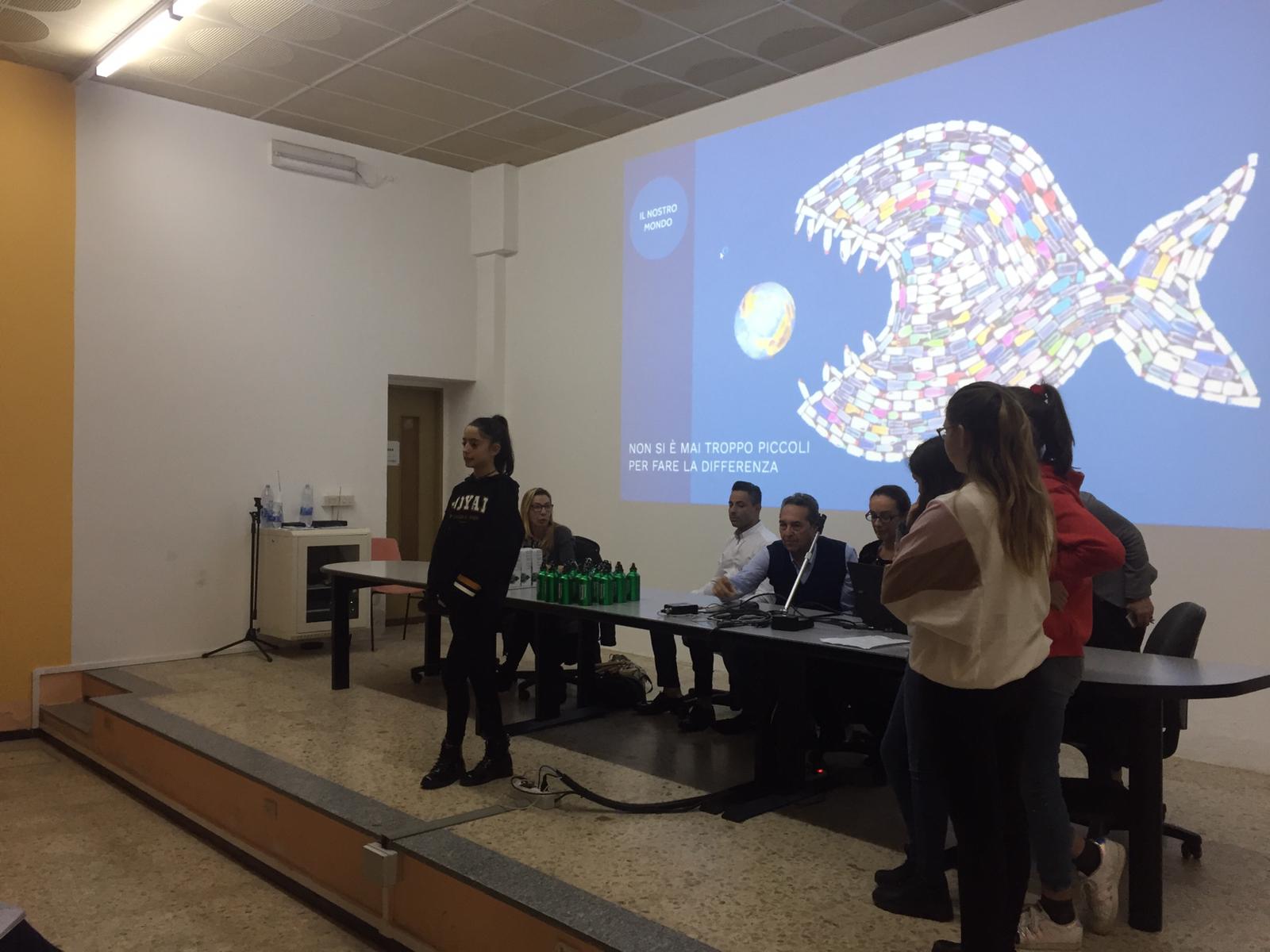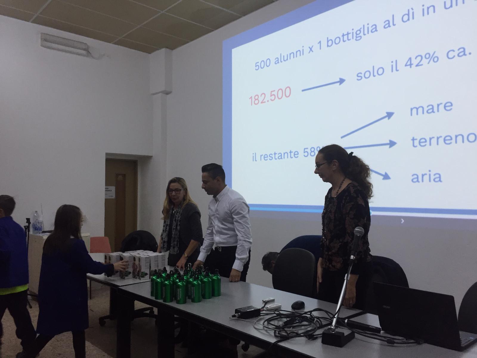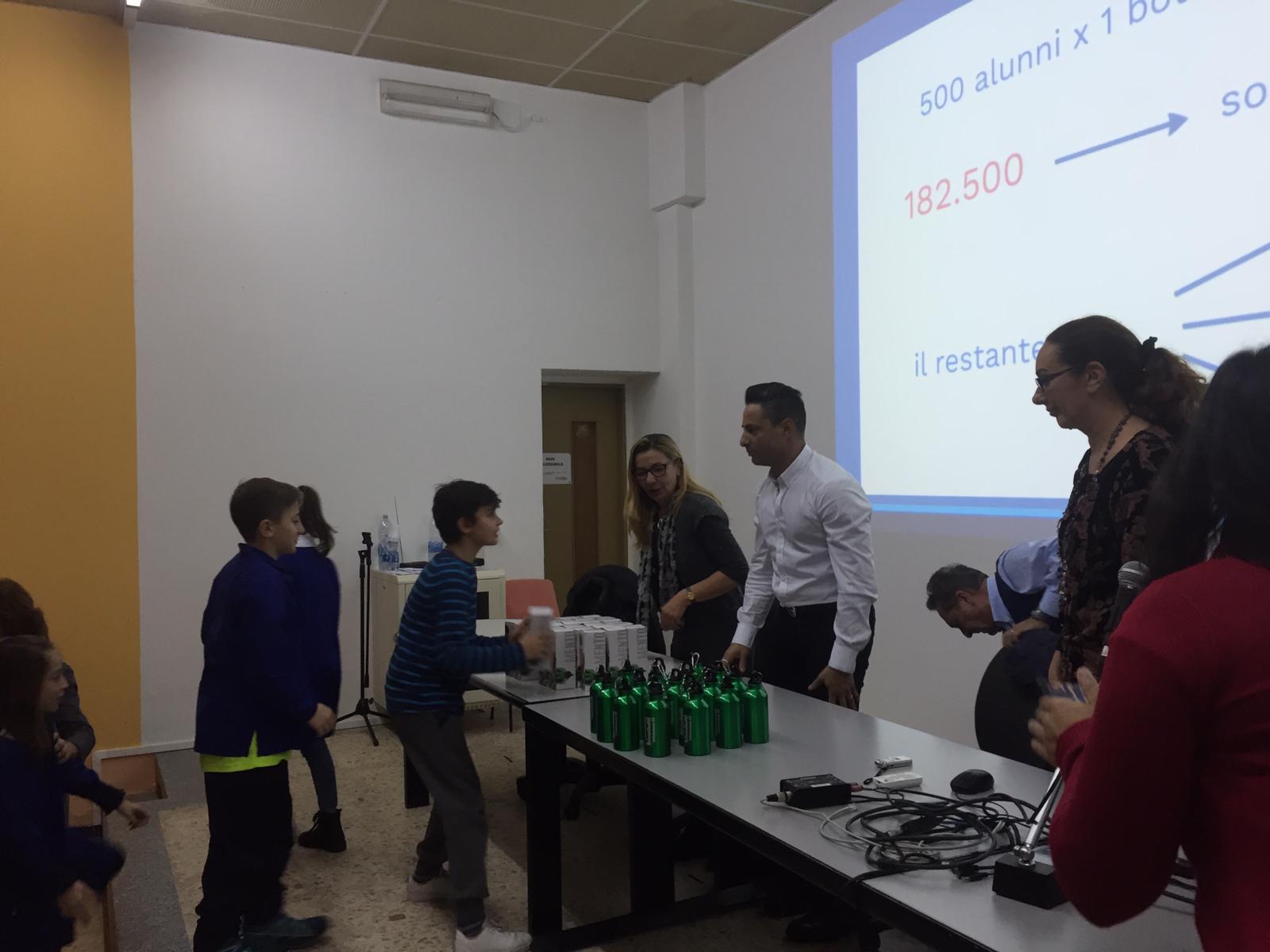 VILLADOSSOLA- 09-12-2019- Si è svolta oggi pomeriggio la cerimonia di consegna di borracce in alluminio da parte del comune di Villadossola agli alunni concittadini dell’I.c Bagnolini . L'evento durante la conferenza stampa tenutasi nell’auditorium della scuola. Nell’ambito del laboratorio “Salviamo il pianeta” tenuto dalle professoresse Coassolo e Ianner, gli alunni hanno compreso l’importanza di alcuni semplici gesti quotidiani per salvaguardare il mondo in cui viviamo. Sono state proprio alcune alunne ad introdurre il tema e a spiegare ai compagni l’inquinamento da plastica e microplastiche e tra i piccoli gesti che possiamo fare c’è quello di sostituire le bottigliette di plastica con una borraccia. Il sindaco di Villadossola Bruno Toscani, alla presenza della dirigente scolastica Stefania Rubatto, ha consegnato le borracce, e ringraziato la ferramenta Bianchetti che si è fatta carico delle spese.