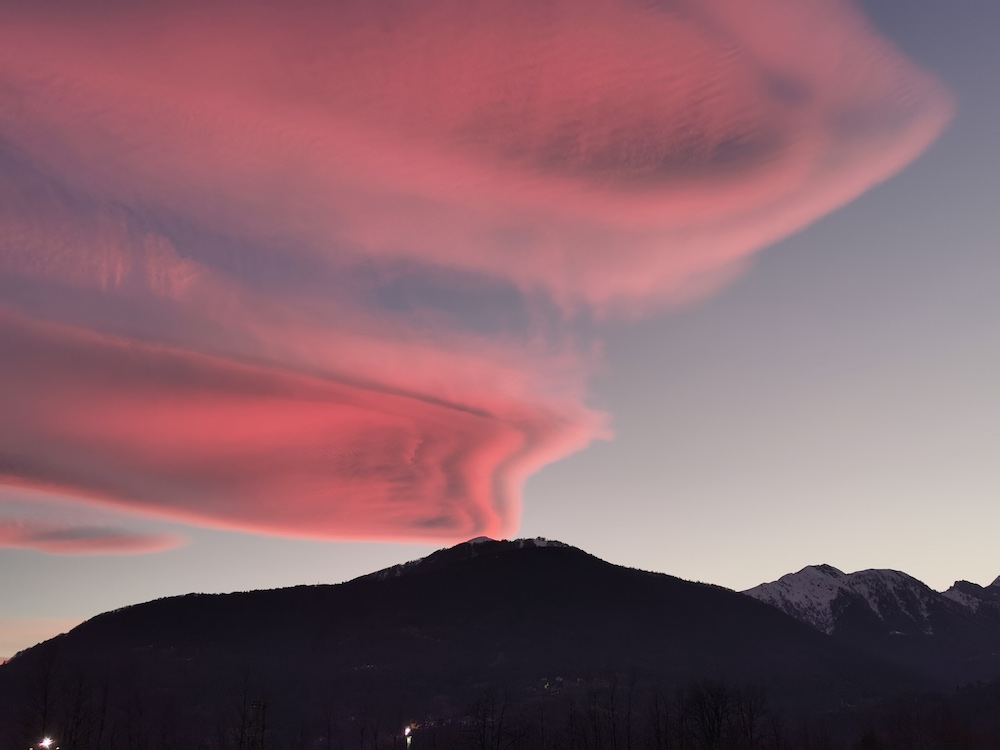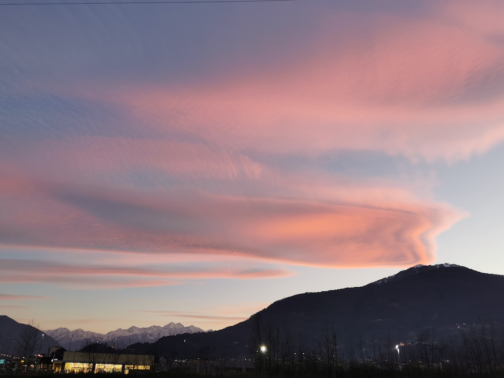 Almeno per questi due motivi mi permetto di allegarVi delle foto scattate stasera, diverrebbero un "regalo" per i vostri lettori e forse una promozione della nostra montagna Moncucco (Domobianca) sorvolata prima da uno "squalo" e poi illuminata da un tramonto boreale".