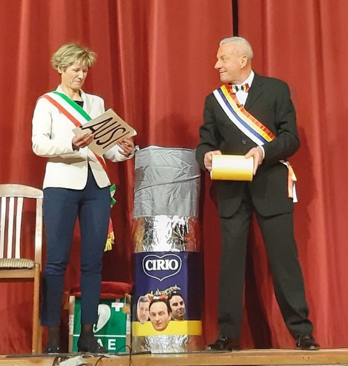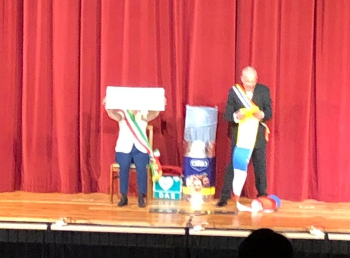 di una marca… regionale: “Cirio”, come il presidente del Piemonte, la cui faccia è stampata in mezzo a quelle dell’assessore Luigi Aicardi e del capogruppo della Lega Alberto Preioni. È questo il regalo, pensato a mo’ di punching-ball, che Claudio Loraschi, il Console Pacian XXV del Carnevale verbanese, ha consegnato ieri al sindaco Silvia Marchionini, ricevendo in cambio le chiavi della città. Nella serata della Giubiascia, andata in scena al teatro Maggiore, il Console ha declamato il consueto discorso satirico partendo proprio dalla sanità e invitando il sindaco a tirare un pugno a quello scatolame ogniqualvolta sente parlare di ospedale a Domodossola. Accanto a lui, assente lo storico segretario Pino, è toccato proprio a Marchionini il ruolo di assistente-valletta. Le sferzate non hanno risparmiato nessuno degli assessori, né lo sconfitto alle elezioni di maggio, Giandomenico Albertella. Il discorso, aperto dall’ingresso di tutti i reali verbanesi (e dei paesi limitrofi), è stato seguito dall’applaudita esibizione del corpo di ballo dei Pacian che, sotto la coreografia di Margherita Gagliardi, s’è esibito sulle note di “Nel blu dipinto di blu" di Domenico Modugno.