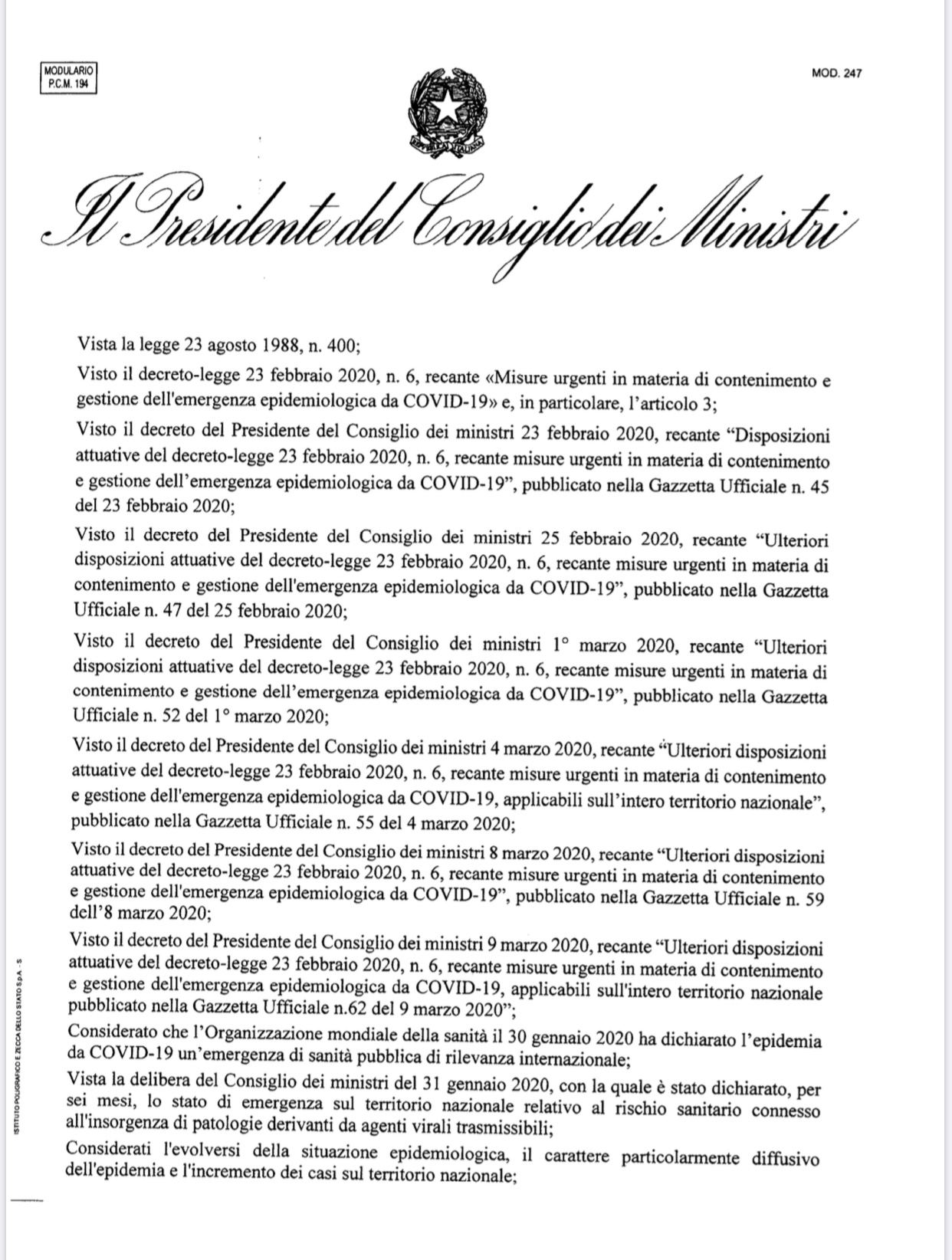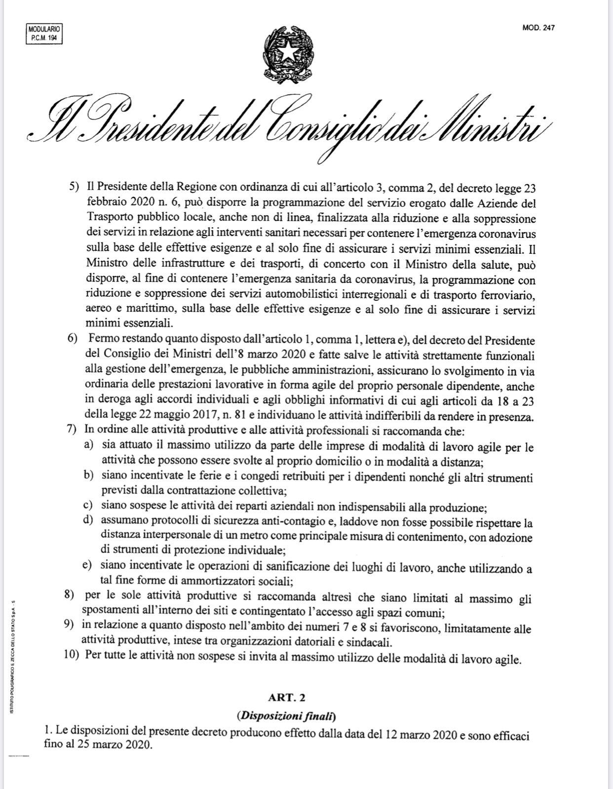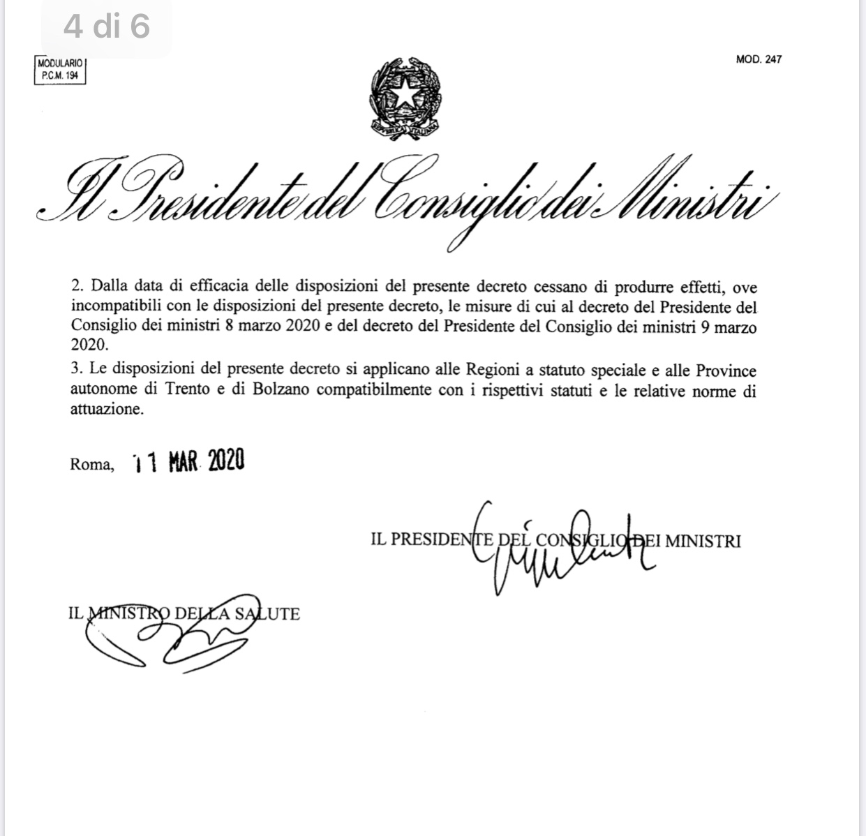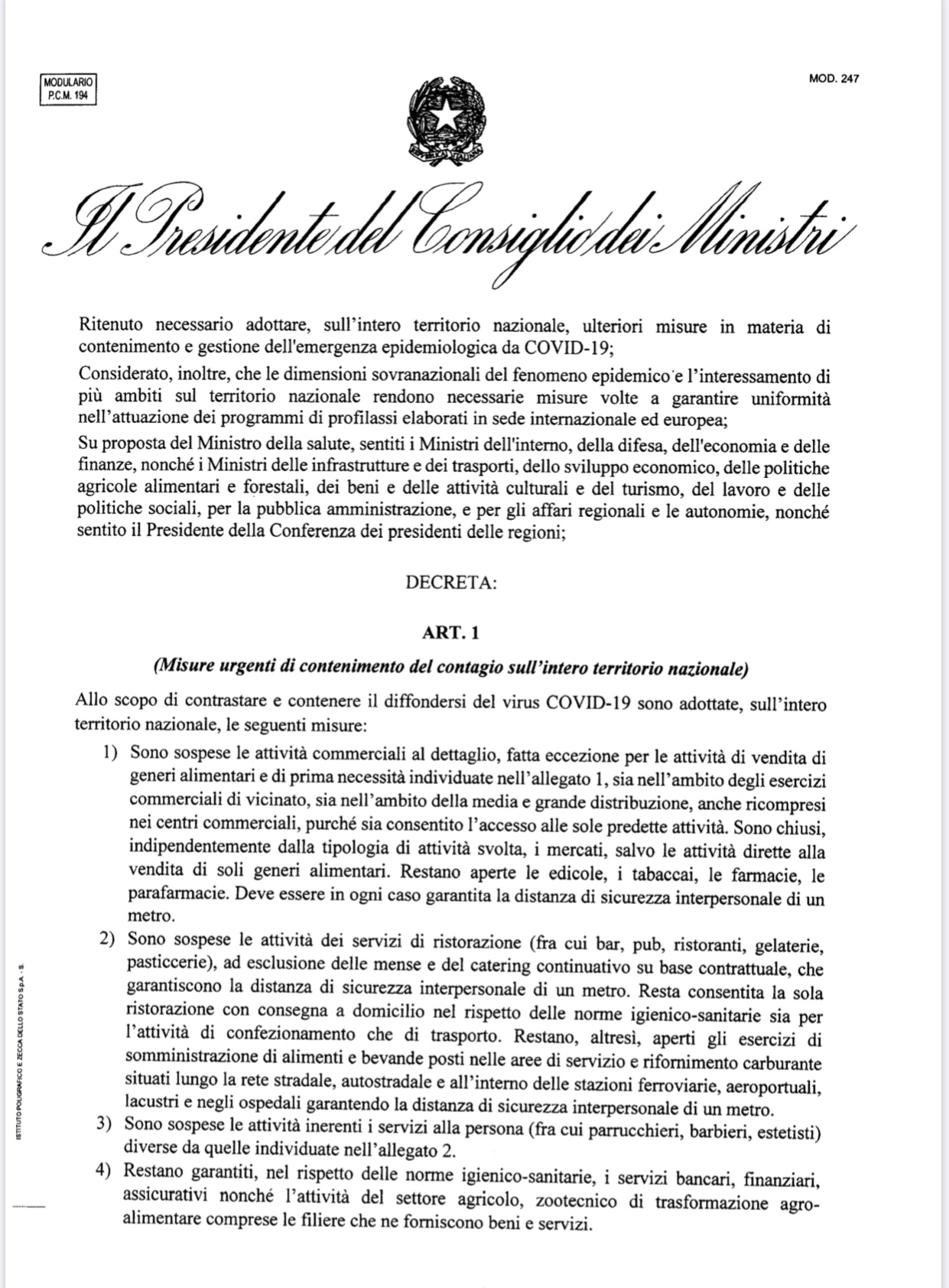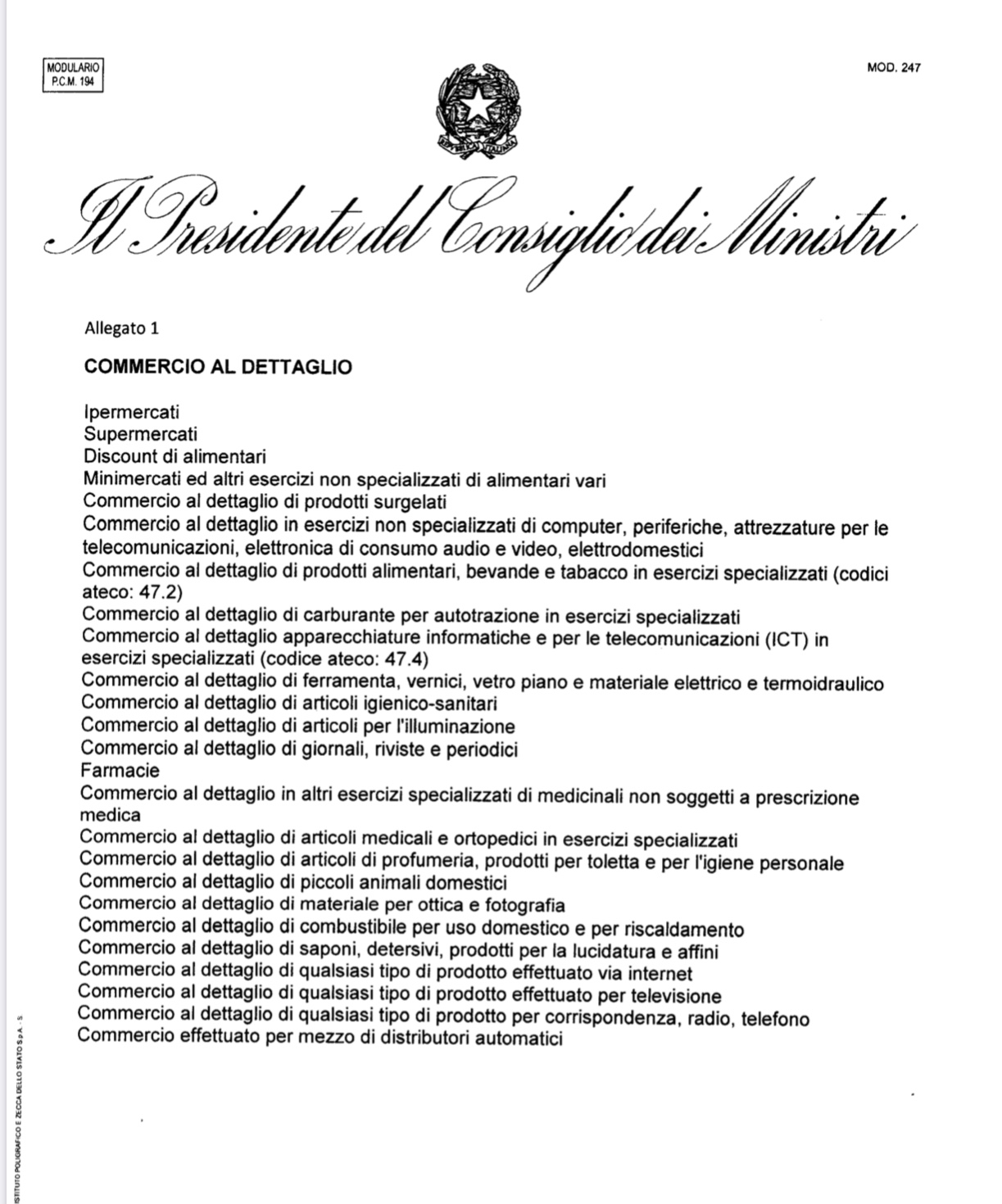 *Chiusura TUTTE attività commerciali, ad eccezione di alimentari e prima necessità (farmacie). QUINDI NESSUNA CORSA AI SUPERMERCATI.*