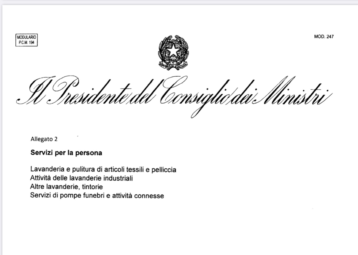 Chiusi totalmente bar e ristoranti (_possibile a domicilio_) parrucchieri, mense e tutte le precedenti chiusure. Le fabbriche e aziende di servizi terziari proteggano i lavoratori e predispongano misure: ferie e chiusure.