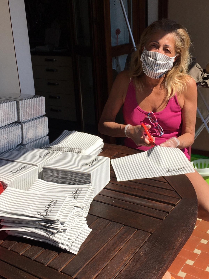 probabilmente abituarci tutti, anche quando saremo nell’annunciata “fase 2”. Ma la disponibilità, almeno nell’immediato, non è sufficiente. È da queste necessità e dalla volontà di dare una mano a chi sta aiutando nell’emergenza, che è nata l’iniziativa degli ex titolari del ristorante Luina di Stresa. Ingegnandosi e mettendoci tempo e materiale, hanno ricavato dalla scorta di tovaglioli rimasti dopo la chiusura del locale, un cospicuo stock di mascherine. Il lavoro se lo sono divisi Katia, che le taglia nella sua casa di Casale Corte Cerro, e Giulia, che le cuce a Vignone. Realizzate artigianalmente in tessuto non tessuto, sono lavabili e riutilizzabili anche se non certificate Ce. Finora ne sono state confezionate 1.800, in parte già distribuite ai vigili del fuoco e alla protezione civile, tutte gratuitamente.