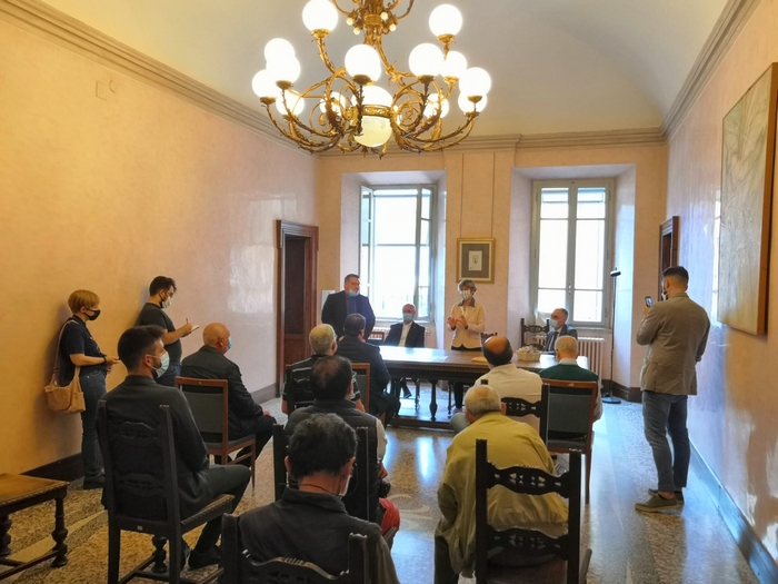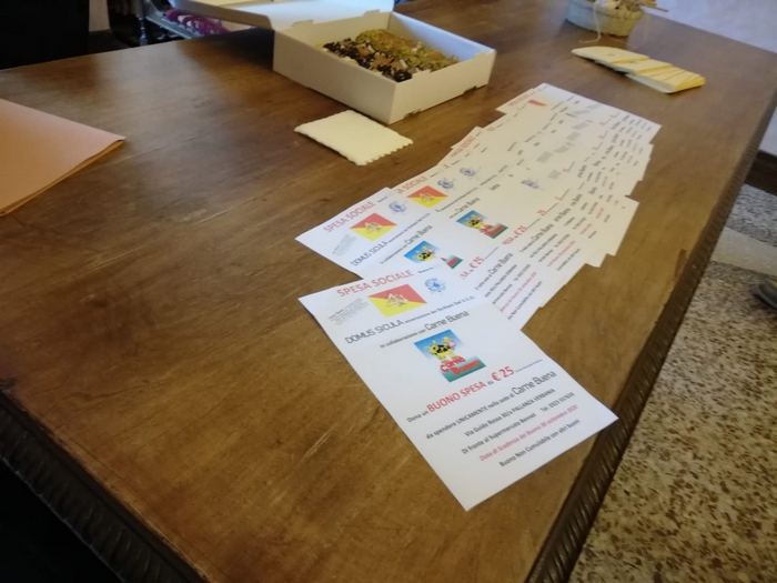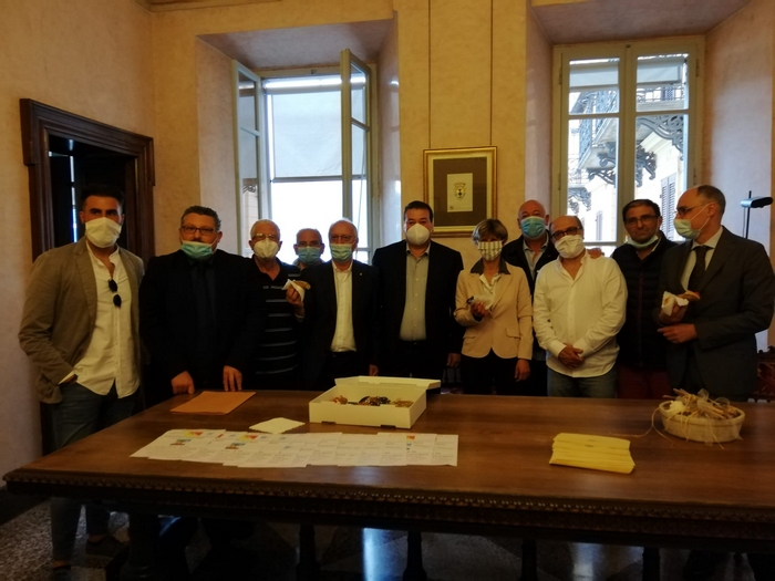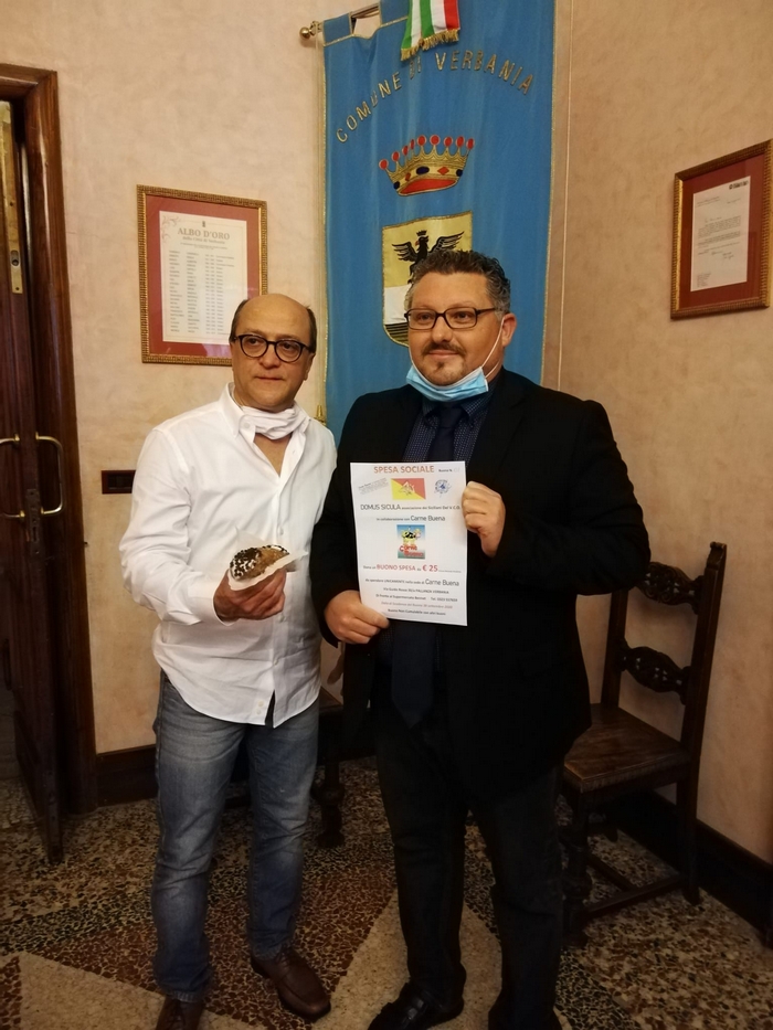 per un valore complessivo di 1.200 euro sono il dono che ieri sera la Domus sicula ha consegnato al comune di Verbania. Sono il frutto della generosità della comunità siciliana del Vco che, tramite la propria associazione, ha raccolto il denaro che, gestito dal Comune, andrà alle famiglie in difficoltà economica a causa dell’epidemia di Covid-19 sotto forma di un buono da spendere nel negozio “Carne Buena” di via Guido Rossa, a Pallanza. La solidarietà alimentare della Domus Sicula è stata suggellata ieri sera nella cerimonia che, a Palazzo di Città, ha visto intervenire anche il prefetto del Vco Angelo Sidoti e l’ex questore Salvatore Campagnolo.