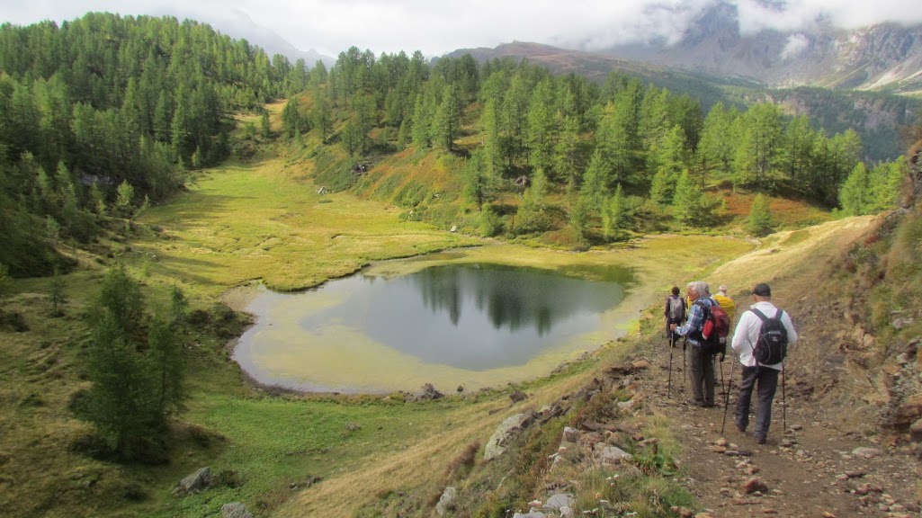 Nuvole e piccoli sprazzi di sole adesso si alternano. Proseguendo incontriamo una leggera salita ed un’altrettanto leggera discesa, costeggiamo il primo laghetto di Sangiatto, quasi asciutto, e raggiungiamo l’alpe che produce, insieme ad altre sei, il famoso Bettelmatt, 2010. Costeggiamo un altro dei laghetti, più che altro un grande stagno, e seguiamo la pista trattorabile che scende a Crampiolo. L’orario ci consente di scendere a valle per arrivare in tempo alla buona pappa di Croveo. Chiudiamo l’anello a Corte d’Ardui e, rapidamente, raggiungiamo Devero. Mirella ci tratta bene, come sempre.