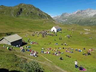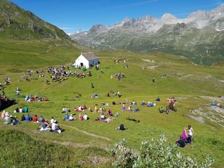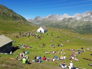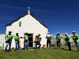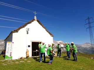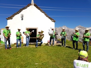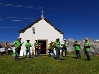 annuale tra le comunità di Formazza e Bedretto il palcoscenico di Musica in quota è stato quest'oggi il meraviglioso scenario d'alta quota del Passo San Giacomo. L'incontro tra le genti di Formazza e Bedretto è stato sancito dalla presenza dei due primi cittadini e con la messa celebrata dal parroco di Bedretto. Sul palco naturale, davanti a tantissime persone, ad esibirsi è stata la Otto Street Band, formazione nata nel 2014 e formata da musicisti che condividono da molti anni la passione per la musica di tipo itinerante. Il loro repertorio spazia dal dixieland agli standard jazz e latini, fino alla musica folkloristica.
