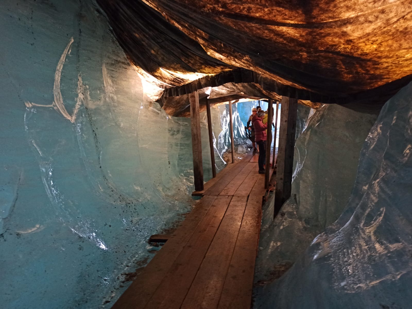 La triste sorte di questo ghiacciaio, già da decenni vittima del riscaldamento globale, viene studiata dagli esperti. Un inedito sistema di teli è stato posizionato sulla parte terminale del ghiacciaio, dove esiste una galleria interna che porta nelle viscere del ghiacciaio i turisti. I teli posizionati in questo modo, con una parte riflettente esterna, porta a condizioni di temperatura assai più bassa i ghiacci sottostanti, permettendone una maggiore conservazione nel tempo. Addentrandosi nell anfiteatro del sottosuolo, si nota con tristezza che tutto cola, rivoli d'acqua segnano il ghiaccio blu della calotta interna.