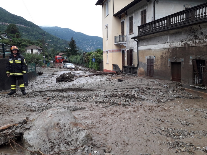 la strada resta chiusa e al momento non è possibile dire quando riaprirà. È parecchio il materiale che prima delle 16 di oggi, in località Resega di Oggebbio (al km 24+600 della strada statale 34), è rovinosamente franato sull’asfalto dell’arteria internazionale che collega l’alto Verbano con la Svizzera. Le intensissime piogge riversatesi sul versante montuoso in un brevissimo lasso di tempo hanno provocato l’esondazione di un rio che, finendo su una strada privata laterale, è diventato uno scivolo per acqua, fango, rocce e alberi. La colata ha coinvolto alcune automobili, fortunatamente senza provocare conseguenze fisiche per gli occupanti. E ha tranciato una condotta del gas, creando un ulteriore pericolo. Immediato l’intervento di Anas e delle forze dell’ordine.