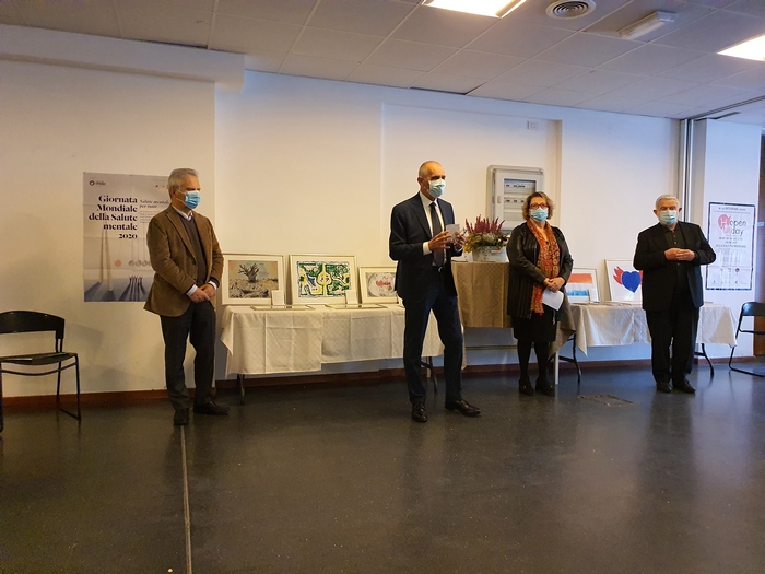 era la Giornata mondiale della salute mentale, celebrata in tutta Italia attraverso diverse iniziative. Quelle legate al reparto di Igiene mentale dell’ospedale “Castelli” di Verbania si sono tenute a Villa Giulia, con la collaborazione del ricco tessuto delle associazioni e delle istituzioni che operano all’interno del reparto, a fianco degli operatori e a sostegno dei pazienti. Per l’Asl il benvenuto è stato dato dal primario Roberto Bezzi e dalla responsabile del Servizio psichiatrico diagnosi e cura, dottoressa Ermelinda Zeppetelli. Quest’ultima ha seguito, durante il lockdown, il progetto di arteterapia che, in collaborazione con la specialista Chiara Rapp, ha coinvolto gli ospiti nel raccontare, tramite disegni, le loro sensazioni riguardo l’epidemia e la serrata che ha interrotto i rapporti personali, isolando ancor più le persone, con effetti negativi soprattutto su chi già era fragile. Gli elaborati sono stati incorniciati e consegnati, corredati da una breve descrizione, nella cerimonia che s’è tenuta a Villa Giulia venerdì pomeriggio. A riceverli sono stati l’Asl Vco, l’Avap, il Tribunale per i diritti del malato – Cittadinanzattiva, il comune di Verbania, il comando della polizia locale di Verbania, la prefettura, la questura, il comando provinciale dei carabinieri e la Fondazione comunitaria del Vco.