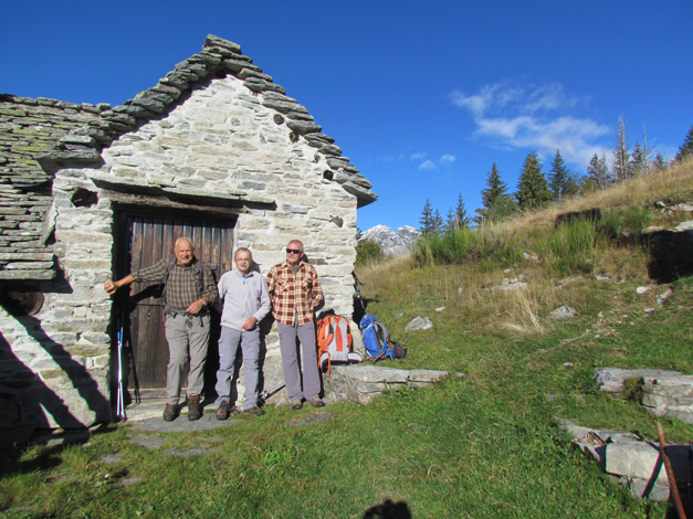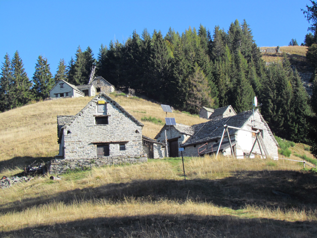 All’oratorio di San Rocco ci sfamiamo al sole, nonostante la scarsa fatica di oggi. Ripartiamo scendendo un po’ lungo l’orribile strada e poi lungo gli splendidi ex prati degli alpeggi di Pianezza, Cascine di Mezzo e Fontana. Ex prati perché, rispetto agli anni scorsi, arbusti, ginestre e alberi stanno cancellando i pascoli. Non si potrebbero recuperare, visto che qui la strada già arriva in prossimità ed è, per l’appunto, agro – silvo – pastorale? Meglio andare sui pascoli alti che, fino a poco fa, erano senza strada? Misteri veramente “agro – silvo – pastorali”! Dopo meno di due ore di discesa molto tranquilla preleviamo le auto lasciate a Craveggia, al cospetto dei celebri camini, per recuperare le altre a Toceno. Un caffè a Santa Maria Maggiore conclude la giornata agrodolce.