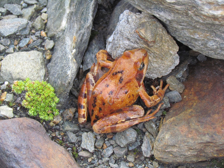 cendiamo ad attraversare il torrente e passiamo sulla sponda destra. Risaliamo alle baite di Chlusmatte e proseguiamo la morbida salita lungo il sentiero evidente e ben segnato, in mezzo al verde di rododendri e piccoli larici. Il passo tranquillo che devo tenere per sostituire degnamente la guida titolare mi dà tempo di pensare che qui, in inverno, con sci, zaino più pesante e neve spesso gelata, il pendio sembra molto più ripido. Raggiungiamo il primo ampio pianoro e ci troviamo di fronte la bellissima cascata che nasce dai laghi di Sirwolte. Lo strappo successivo, con l’aiuto ad un certo punto di alcuni gradini di ferro, conduce al disopra della cascata. Camminiamo da quasi un’ora e mezza.