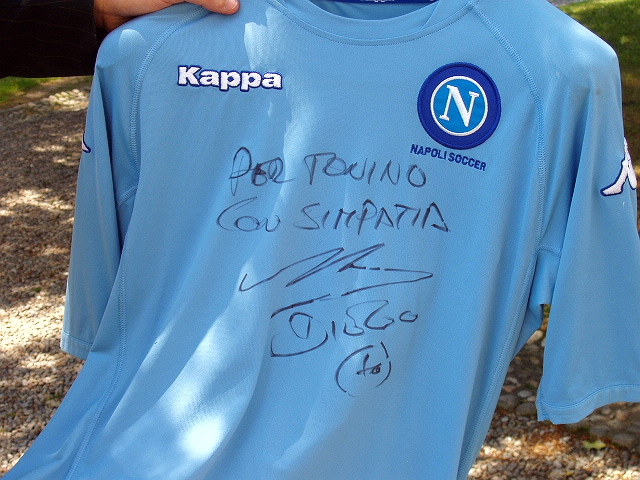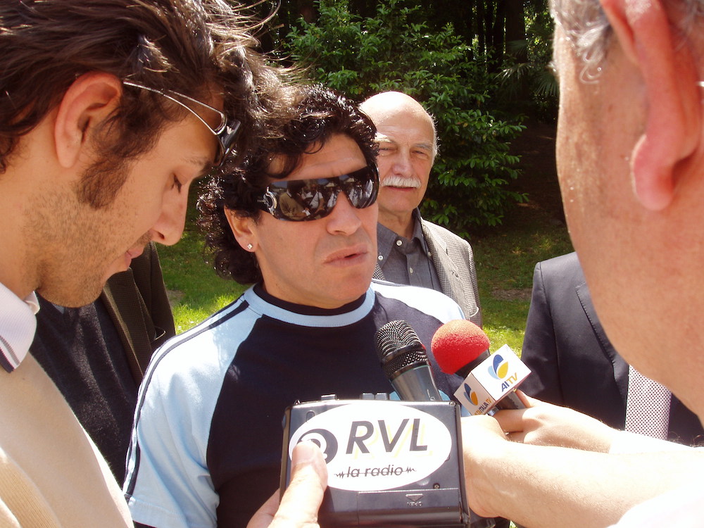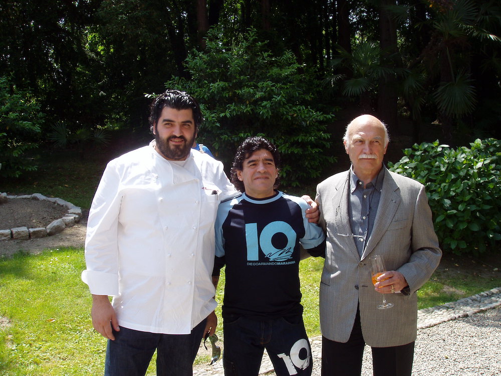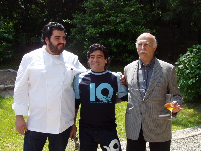 dei fan di Diego, triste per la scomparsa di D10S, anche chef Antonino Cannavacciuolo che sulla sua pagina FB ieri sera scriveva: "Mi ricordo ancora quella volta che hai varcato la soglia del mio ristorante a Villa Crespi...Indescrivibile! È stato un onore cucinare per te. Resterai sempre nel mio cuore. Arrivederci". Era il 2006 e lo chef tifoso sembrava felice come un bambino mentre accoglieva il campione sul prato di Villa Crespi, attorniato da giornalisti e "addetti ai lavori". Un aperitivo, poi spuntò da qualche parte una maglia del Napoli che Diego non esitò a dedicarli, e poi magicamente spuntò anche un pallone e allora il più grande di tutti concesse allo chef anche qualche passaggio. Ad accompagnarlo, tra gli altri, Salvatore Bagni, arcigno difensore di quel Napoli che aveva fatto sognare un intero popolo. Invitato a Villa Crespi dal presidente degli albergatori cusiani Osvaldo Primatesta, Diego Armando Maradona era diretto in Germania per assistere ai Mondiali di Calcio. Prima però s'era fermato in Italia, si parlava di un progetto per una linea di abbigliamento a lui intitolata; la sera prima era atterrato a Napoli da dove avrebbe dovuto ripartire subito alla volta di Milano e poi di Orta. Ma il programma ritardò per causa di forza maggiore: la Guardia di Finanza aveva fermato il campione a causa dei suoi conti in sospeso col fisco italiano, sequestrandogli l'orologio e lui riuscì a raggiungere il lago d'Orta solo l'indomani. Ma fu festa comunque.