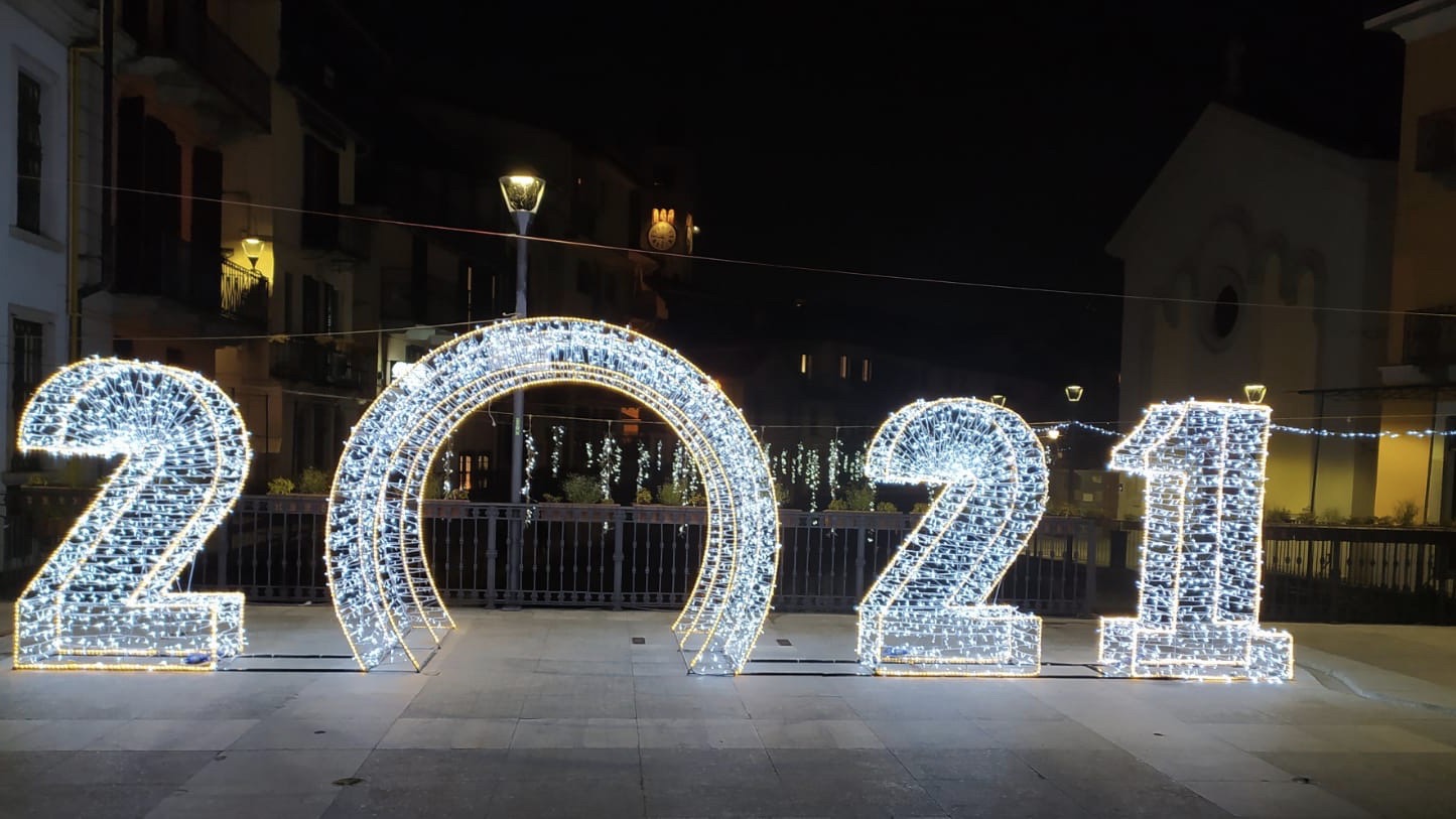 E' stata posizionata anche una scritta luminosa “2021”, proprio di fronte all’albero.