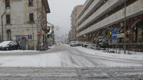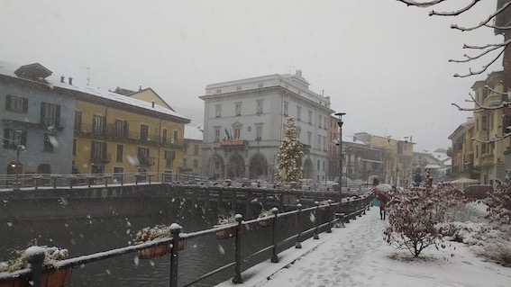 OMEGNA -04-12-2020 -- Anche Omegna imbiancata: venerdì 4 dicembre la città si è svegliata con la neve, come annunciato dalle previsioni. Nelle foto, la città in mattinata.