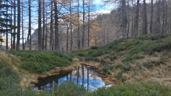 DOMODOSSOLA-11-12-2020 - Questa foto (in alto) è stata scattata il mese scorso in Alpe Veglia. Il Lago delle Fate appare completamente secco; solo piccolissime pozzanghere sparse sul fondale ricordano che lì si poteva ammirare uno splendido specchio d’acqua in mezzo al bosco. Cosa può averne provocato lo svuotamento non è ancora chiaro; è vero che l’autunno 2020 fra le nostre montagne è stato eccezionalmente caldo e siccitoso, ma è anche vero che, come dimostrano altre foto scattate lo stesso giorno, il Lago delle Streghe, a poche centinaia i metri di distanza, era al suo livello normale. Anche gli altri laghetti e pozze d’acqua della zona apparivano normali quel giorno (vedi foto). Unica eccezione: un laghetto situato pochi metri più in su del Lago delle Fate, anch’esso completamente secco. Ora la zona è ricoperta da un provvidenziale strato di neve; si spera che la prossima stagione calda ci restituisca lo spettacolo delle chiome verdi che si specchiano nelle acque lisce e limpide del lago. In caso contrario occorrerà studiare a fondo cosa stia succedendo e intervenire per riportare questa piccola perla naturale al suo stato originario.