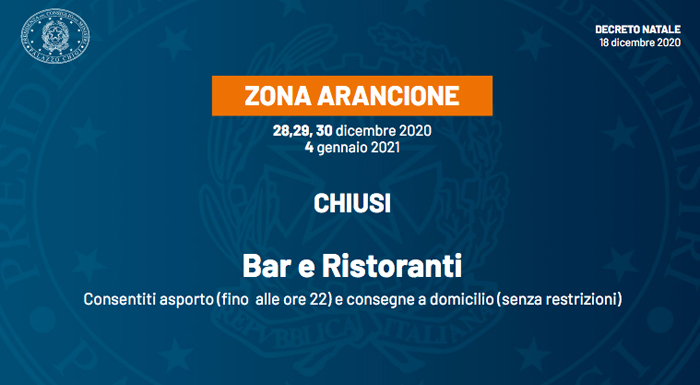 In particolare il 24, 25, 26, 27 e 31 dicembre 1, 2, 3, 5, 6 gennaio saranno giornate rosse per tutto il Paese, dove si potrà uscire di casa solo per ragioni di lavoro, necessità e salute.