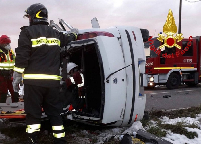 SESTO CALENDE - 01-01-2020 - - San Silvestro con incidente sulla strada del Lago Maggiore orientale. Attorno alle 16 di ieri, sulla direttrice tra Sesto Calende e Angera, l’autista di una Fiat Punto ha perso il controllo del veicolo che, dopo aver sbandato, ha urtato un camioncino e un’altra macchina, finendo per ribaltarsi, adagiandosi su un fianco in mezzo alla carreggiata. Il sinistro ha coinvolto tre persone. Il guidatore della Punto è rimasto incastrato nell’abitacolo ed è stato necessario l’intervento dei vigili del fuoco -accorsi insieme a personale del 118, compreso l’elisoccorso al quale, fortunatamente, non s’è dovuto ricorrere- per liberarlo. La strada è rimasta chiusa in entrambe le direzioni per qualche ora.