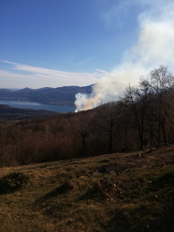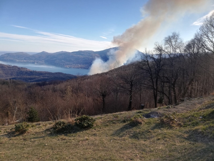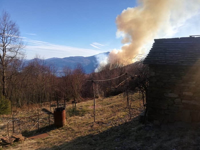 COSSOGNO - 22-03-2021 -- Le fiamme sono partite nelle vicinanze del nucleo abitato e minacciano le baite dell'alpeggio di Rugno, nel territorio del comune di Cossogno. Vigili del fuoco e carabinieri forestali dal primo pomeriggio di oggi sono in azione per contenere l'incendio boschivo sviluppatosi sulle alture del Verbano, in una zona a circa 740 metri di altitudine compresa tra il centro di Cossogno e la parte meridionale di Miazzina. La colonna di fumo è visibile anche da Verbania e dalla pianura.