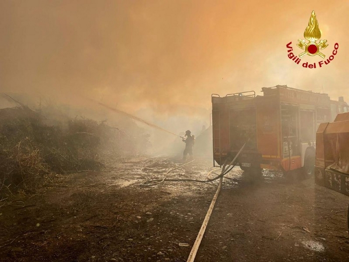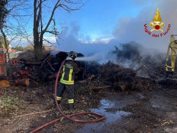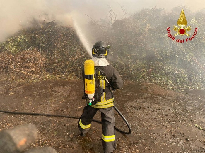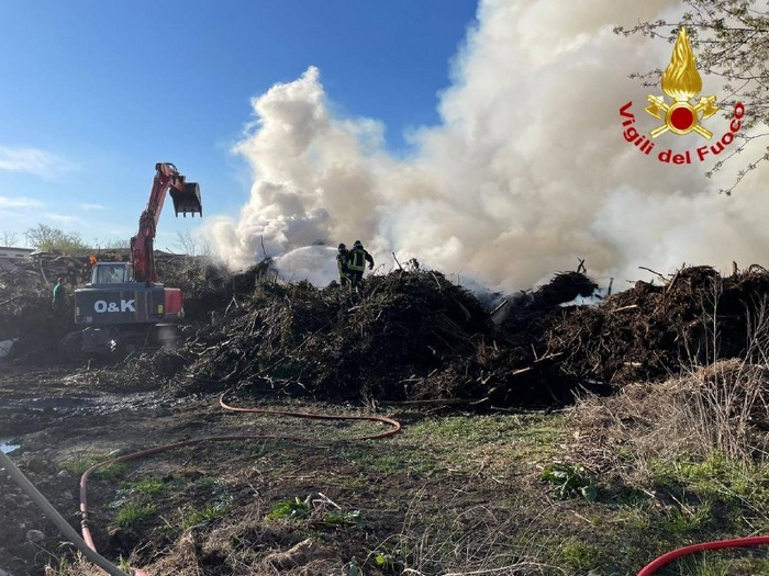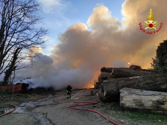 SESTO C. - 08-04-2021 -- Nessun ferito, né edifici danneggiati nel grande incendio scoppiato ieri mattina in un’azienda di lavorazione di scarti vegetali a Sesto Calende. Le fiamme si sono sprigionate da un cumulo di “verde” in un deposito ampio 5.000 metri quadrati e, sviluppatesi rapidamente, hanno richiesto l’intervento di numerose squadre dei vigili del fuoco. Due autopompe, tre autobotti, due fuoristrada e un carroaria (automezzo per il trasporto di bombole di aria respirabile) hanno circoscritto il fuoco e trasportato il materiale che ancora non era bruciato, lavorando per quasi tutta la giornata.