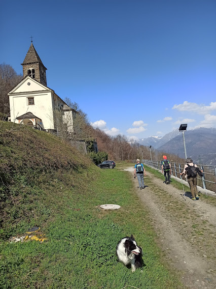 Un’altra giornata stupenda e troppo calda per essere a fine marzo, con la pandemia che continua a limitarci, mi vede, con la vivace compagnia di Asia, posteggiare in prossimità del cimitero di Crosiggia, 402, frazione alta di Domodossola. Il programma, piuttosto ambizioso, è di percorrere in lungo e in largo il versante orientale della montagna di Domodossola e Villadossola, il Moncucco. Lungo il sentiero più amato e frequentato dai domesi, con brevi strappi e tratti pianeggianti, arriviamo all’Oratorio di Sant’Antonio e alla borgata di Anzuno, 551. Attraversiamo il borgo e il Rio d’Anzuno in località Molini, 566, e, in breve, siamo alla Cappella Dell’Oro, 602. Qui le persone normali proseguono, quasi in piano, verso Tappia.