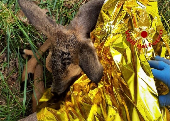 VIZZOLA T. - 27-04-2021 - - Rischiava di annegate nel canale, schiacciato dalle griglie di filtraggio dell’acqua, il giovane capriolo salvato domenica dai vigili del fuoco. Una squadra del distaccamento di Somma Lombardo è intervenuto a Vizzola Ticino, nel parco del Ticino, dopo aver ricevuto la segnalazione di un animale selvatico in difficoltà in un bacino idrico industriale. L’ungulato è stato recuperato, riscaldato e poi rimesso in libertà.