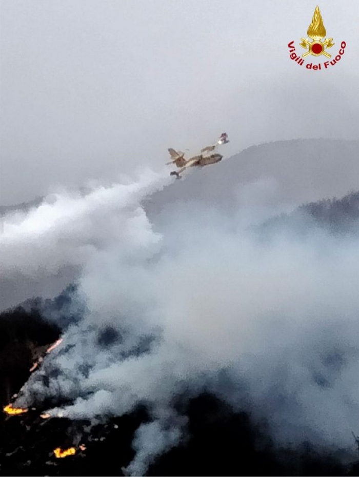 GURRO - 01-02-2022 -- Sono proseguite per tutta la notte le operazioni di spegnimento dell’incendio boschivo scoppiato ieri mattina in Val Cannobina, sopra l’abitato di Gurro. I vigili del fuoco del comando provinciale e i volontari Aib hanno dispiegato una settantina di uomini, coadiuvati da due Canadair, per contenere i diversi roghi innnestatisi nella zona vicina all’alpe Piazza. Le fiamme hanno minacciato alcune baite dell’alpeggio che, per fortuna, sono rimasti indenni dal fuoco.
