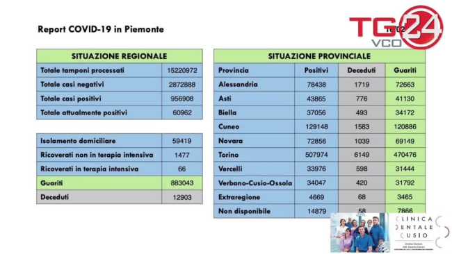 COVID: 3.142 I NUOVI CASI IN PIEMONTE