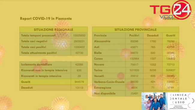 COVID, OLTRE 2MILA NUOVI POSITIVI IN PIEMONTE