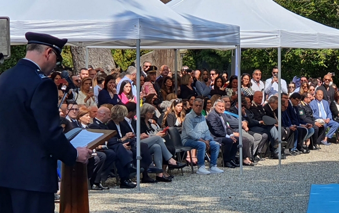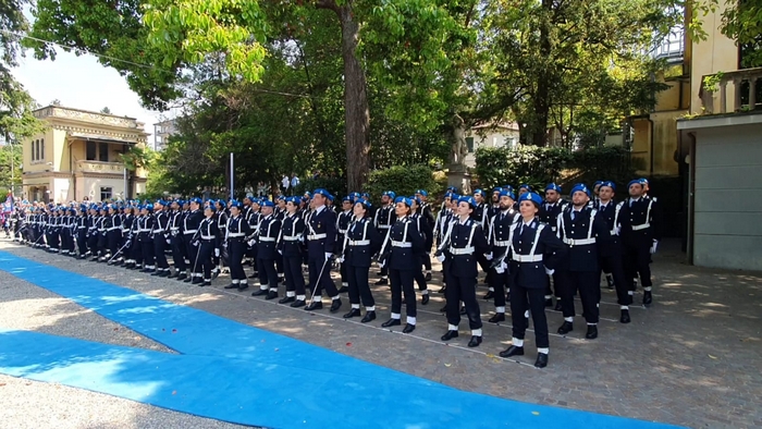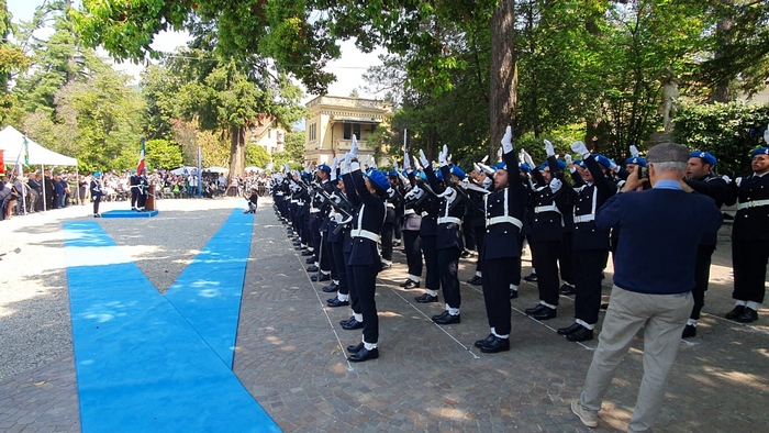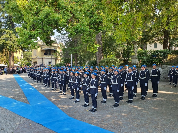 VERBANIA - 13-05-2022 -- È stato il parco di Villa Giulia, con il lago come sfondo, il luogo di conclusione dell’avventura verbanese dei 128 allievi del 179° corso per agenti della polizia penitenziaria. Al termine di sei mesi di intensa formazione, hanno giurato oggi fedeltà alla repubblica, entrando ufficialmente nei ranghi del corpo, che già ha dato loro le nuove destinazioni. Di fronte alle massime autorità civili e militari hanno fatto gli onori di casa Liliana Chiarlone, la direttrice della scuola intitolata a Salvatore Rap, agente morto nel 1946 in servizio e decorato con medaglia al valore; e il primo dirigente Marco Mostacciolo. Era presente anche Rita Russo, provveditore regionale dell’amministrazione penitenziaria cui è spettato il saluto finale, prima del rompete le righe e del classico lancio in aria dei baschi blu degli agenti, momento di gioia e di commozione per la fine del corso.