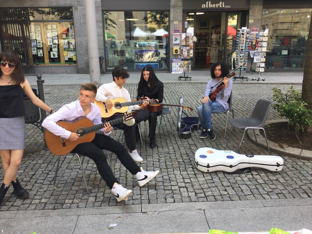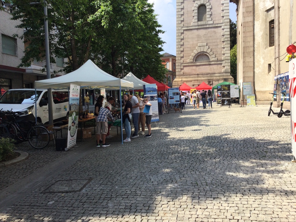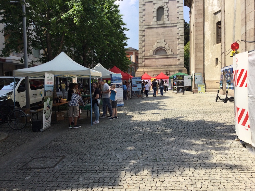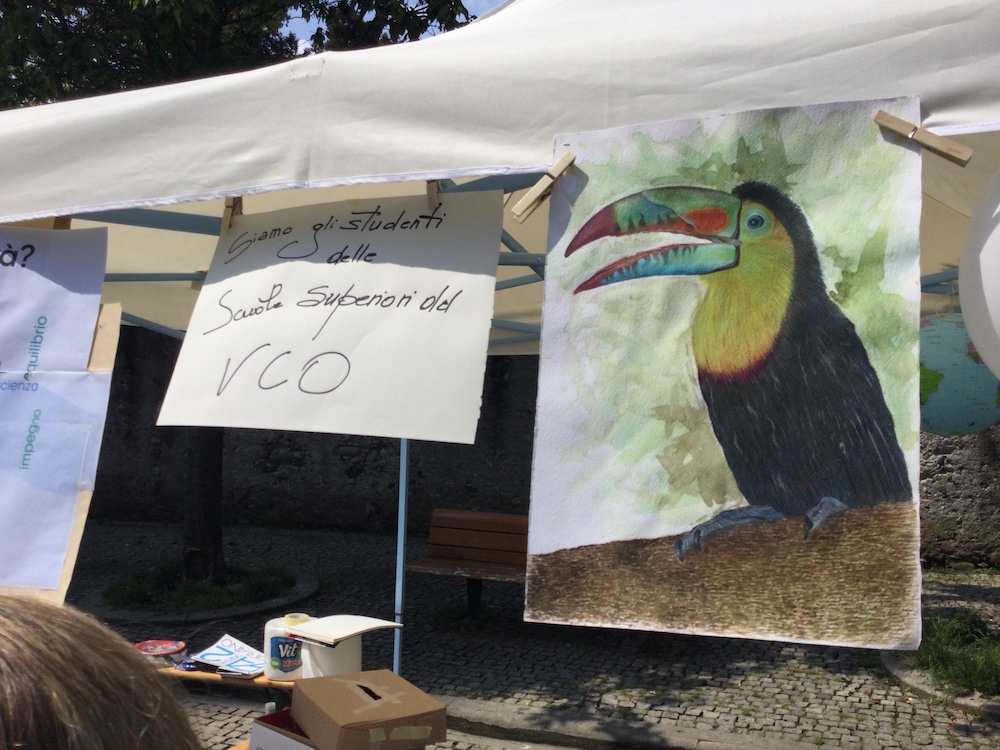 VERBANIA - 15-05-2022 -- Sono stati soprattutto i più giovani, bambini ma anche adolescenti a prendere parte attiva in piazza San Vittore alla manifestazione che enti, scuole, aziende e associazioni hanno dedicato alla Giornata della Terra. Rimandata dal 24 aprile (giorno della ricorrenza) a causa del maltempo, la manifestazione verbanese ha potuto contare questa volta sulla clemenza di un meteo domenicale pressoché estivo. Le proposte per i curiosi e per le persone attente alle tematiche ambientali non sono mancate. A cominciare dalle specialità della terra proposte dall'istituto agrario Fobelli di Crodo: birre, saponi, profumi, vino e vermouth tutti rigorosamente prodotti nella scuola ossolana (e mancavano aceto e idromele perchè esauriti da tempo), dove a raccontare ai visitatori di tanta eccellenza è stato il professor Stefano Costa accompagnato da alcuni studenti. Studenti in prima linea anche per l'accompagnamento musicale, con gli strumentisti del liceo musicale Gobetti di Omegna o per i laboratori di pittura realizzati dal coordinamento degli studenti delle scuole superiori del VCO.