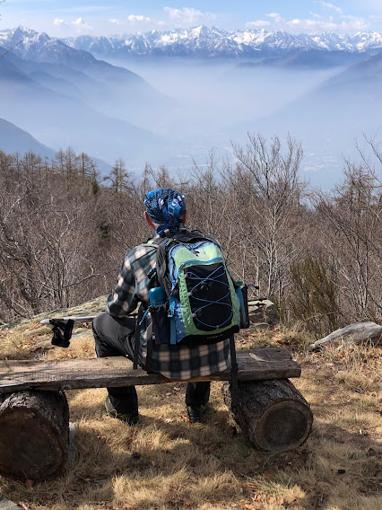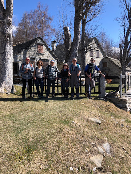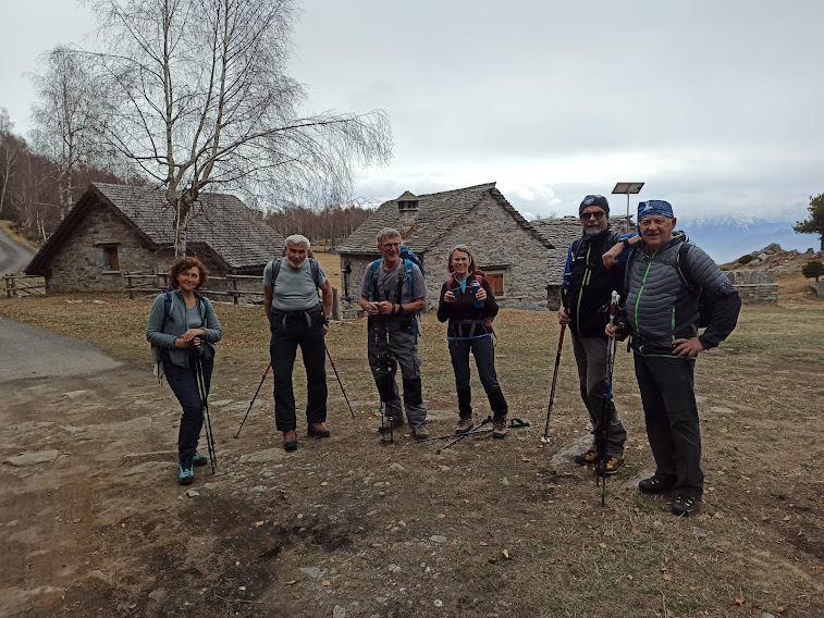 Dopo il ritrovo ed il consueto caffè a Pontetto al bar Gufo’s, saliamo con le auto poco sopra Altoggio e parcheggiamo a quota 800. Per la squadra di oggi adottiamo, come avrebbe fatto anche Mourinho, il 2 – 5, ovvero la formula della doppia badante, che si rende ormai quasi indispensabile con l’avanzare dell’età.