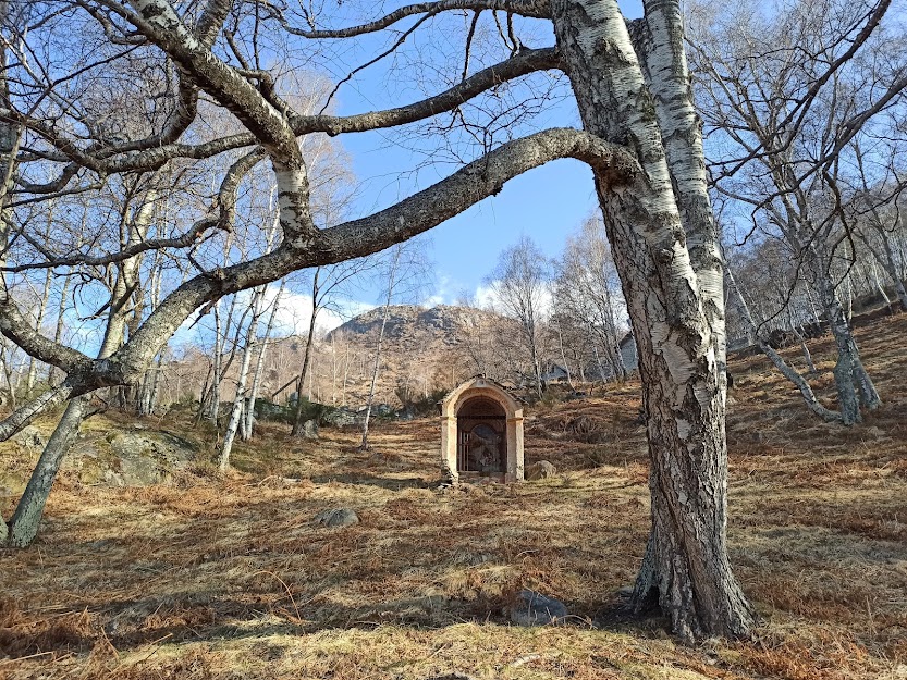 Dopo un breve tratto di asfalto, in corrispondenza di un tornante imbocchiamo il sentiero A04, evidente e ben segnato, che incrocia più volte la strada asfaltata e ci porta alle cappelle di Pusalà, dei Genovesi e del Gaggio, 1060. All’Oratorio della Madonna di San Luca, 1156, prima breve pausa, dopo un’ora scarsa di cammino tranquillo.
