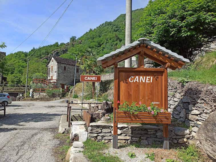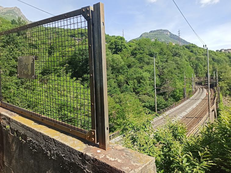 Segue una pista pianeggiante dove si notano sulla destra, verso la montagna, colossali opere di difesa della ferrovia del Sempione. Si lascia sulla destra una cappelletta all’interno della quale si trova l’elenco delle vittime delle due frane (16.45 del 12.11.1951 e 20.30 del 19.8.1958). Dopo tre quarti d’ora, a quota 370, siamo al bivio per Canei, dove inizia lo stretto e ripido sentiero da cui scesero al Ponte dell’Orco le truppe di Ludovico il Moro nel 1487.