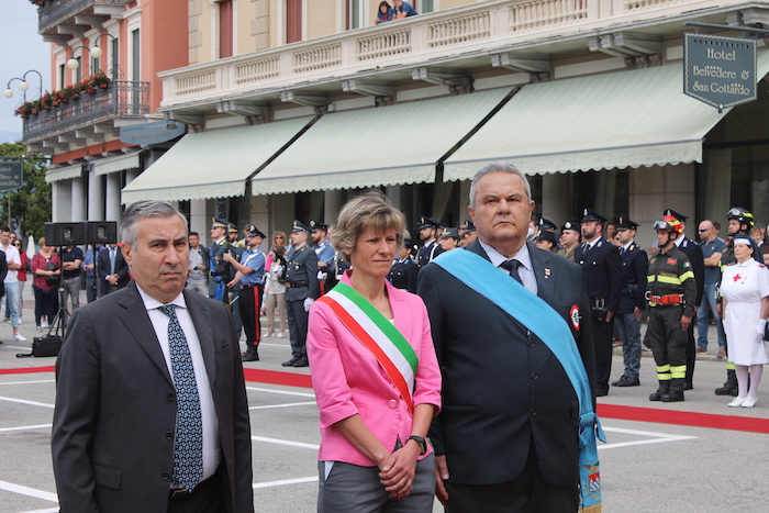 VERBANIA - 02-06-2022 -- Dopo due anni, la cerimonia provinciale per la Festa della Repubblica è tornata in piazza, a Pallanza, e con essa il rito della memoria è tornato condiviso. Condiviso dal nutrito parterre delle autorità e dei sodalizi d'arma ma anche da tanti cittadini che hanno assistito alla cerimonia sotto un cielo che prometteva pioggia. Proprio il valore della memoria è stato uno dei passaggi chiave del saluto del sindaco Silvia Marchionini, che ha aperto gli interventi dove "noi nati nella Libertà diamo certi valori per scontati". Quindi è toccato al vice presidente della Provincia del VCO, Rino Porini, portate i saluti dell'ente ricordando come il 2 giugno, oggi più che mai, "rinnova l'impegno alla difesa dei valori di libertà, eguaglianza, giustizia, democrazia, lavoro...". Inevitabili i riferimenti a quella guerra in Ucriana che tanta preoccupazione desta in ognuno, accenni anche nella parole del prefetto Michele Formiglio che s'è fatto portatore di un messaggio contro l'indifferenza e il disimpegno verso la collettività. A lui il compito di leggere la lettera del Presidente della Repubblica Sergio Mattarella.