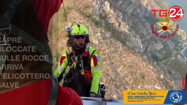 CAPRE BLOCCATE SULLE ROCCE: ARRIVA L’ELICOTTERO, SALVE