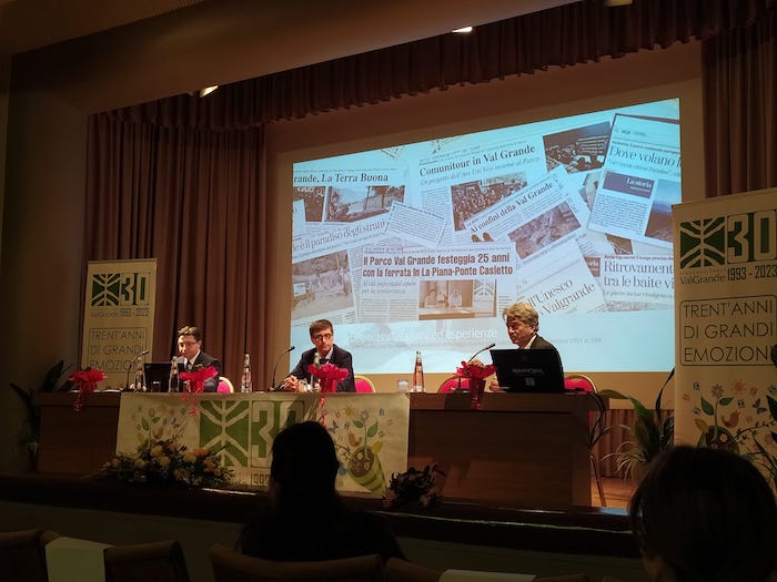 VERBANIA - 20-11-2023 -- Davanti a un numeroso e interessato pubblico, si è svolto il convegno organizzato dal Parco Nazionale Val Grande per festeggiare il suo trentesimo compleanno. Il presidente Luigi Spadone, in apertura dell’incontro, ha voluto ricordare con parole commosse Franca Olmi, da poco scomparsa, primo presidente dell’ente parco e grande sostenitrice dello stesso. “Faremo di tutto per difendere questo Parco e lo faremo in memoria di Franca Olmi”, ha detto.