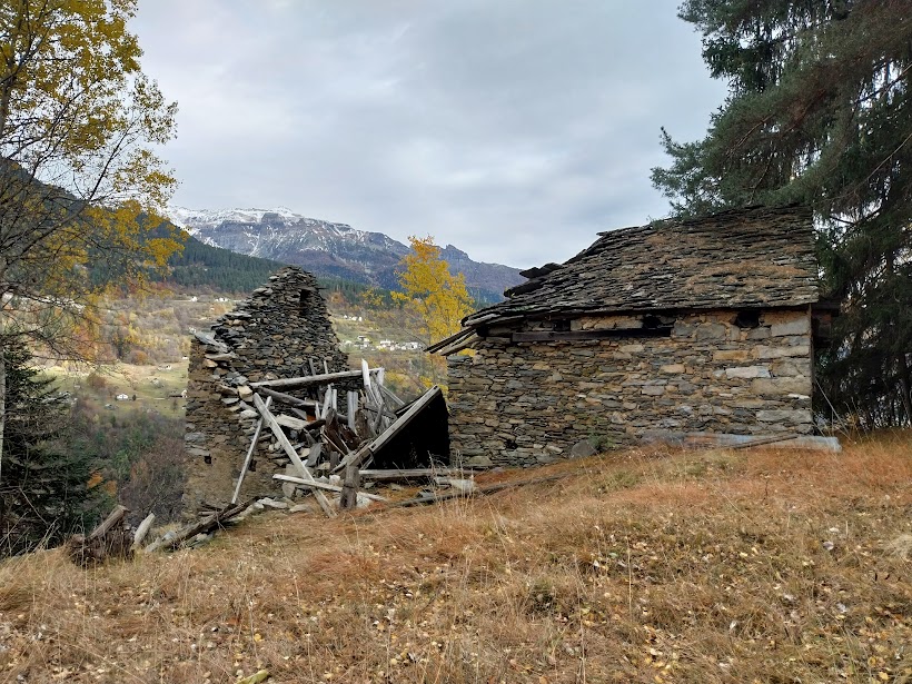 Dopo la visita guidata ritroviamo l’assetto da escursione e torniamo sui nostri passi, verso Varzo, per una decina di minuti. In un rado bosco pianeggiante, di fronte al magazzino della stazione di Iselle, imbocchiamo un sentiero non segnalato e non segnato sulla destra (sud) con cieca fiducia in chi ci guida. E gli crediamo anche quando dice che la pacchia è finita: adesso si sale.