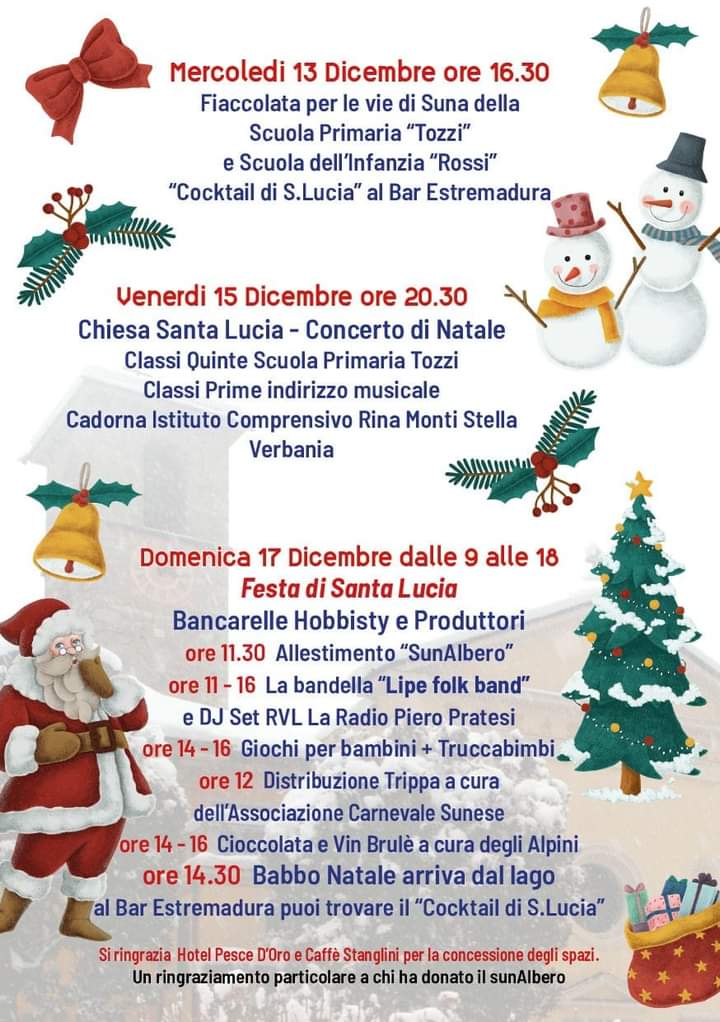 17 dicembre festa di Santa Lucia sul lungolago dalle 9 alle 18.