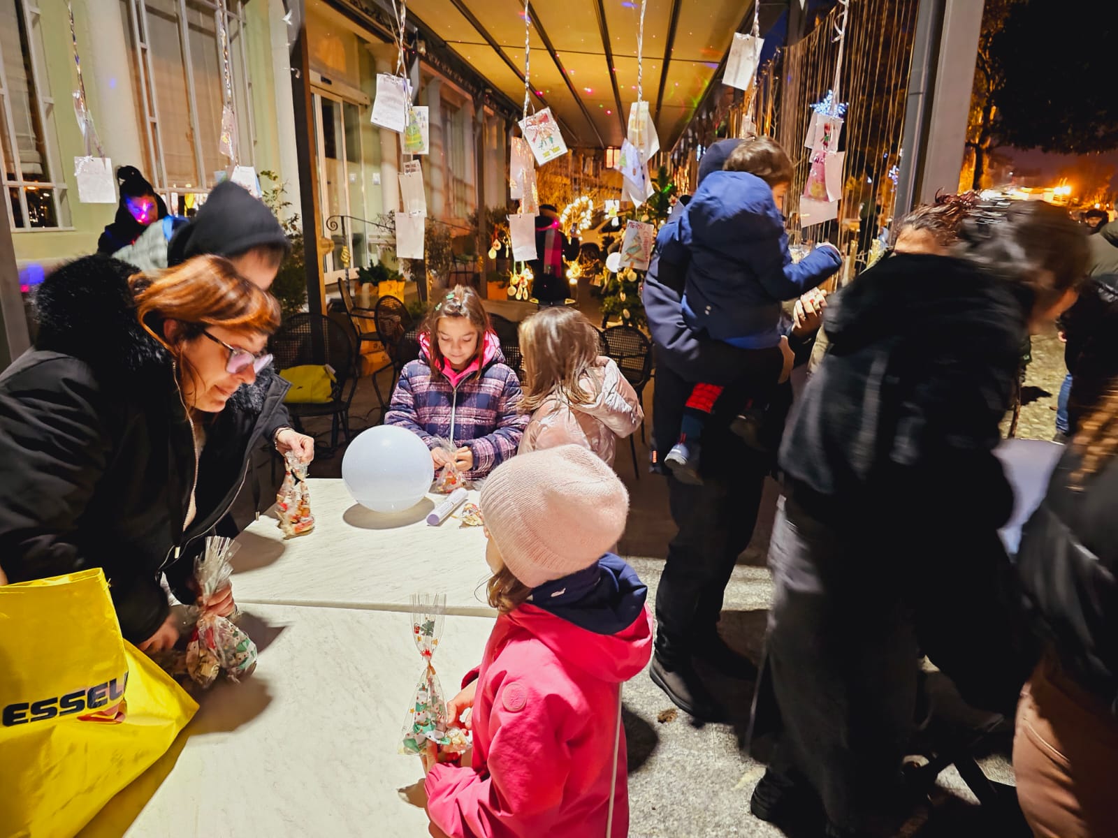 Il viaggio è poi proseguito raggiungendo il lungolago e stazionando davanti all'hotel Pesce d'oro egregiamente allestito per l'occasione, dove i bambini hanno potuto addobbare gli alberi presenti.