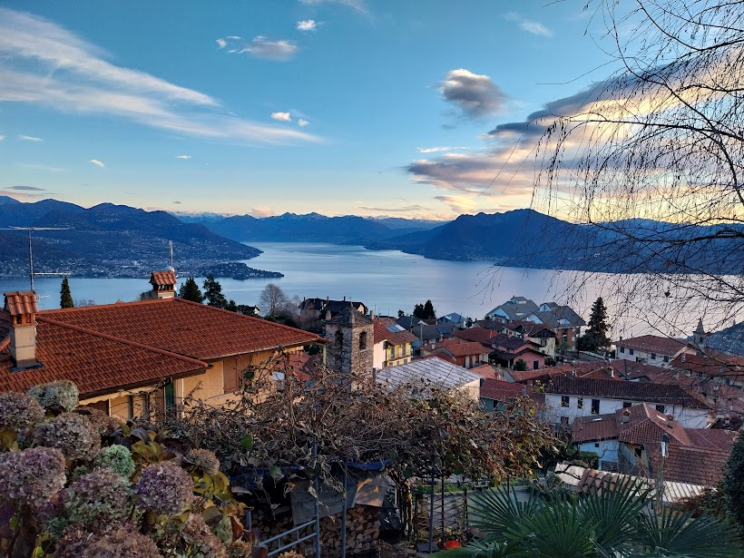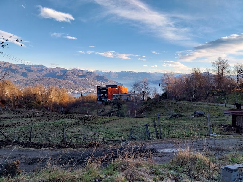 Abbiamo scelto uno dei percorsi più brevi, tranquilli e panoramici per salire la montagna fra i due laghi, tenendo anche conto della brevità delle giornate a metà dicembre. Saliamo a Levo, 600, dall'uscita dell'A26 a Carpugnino, ma scopriremo che sarebbe stato più facile arrivare qui direttamente da Baveno.