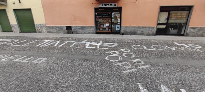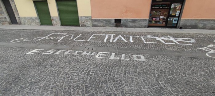 ORNAVASSO - 24-12-2023 -- Sull’asfalto, sul porfido, sulle strisce pedonali o di traverso alla strada. Stamane Ornavasso s’è risvegliata con una serie di scritte a caratteri cubitali pitturate con vernice bianca lungo le principali vie del paese. Frasi e allusioni, accompagnate dalla parola “clown”, fanno pensare a uno sfottò pubblico nei confronti di un bersaglio ben preciso, di una persona in particolare. Forse di un carabiniere, il cui cognome -che è anche però una parola comune- è stato scritto per terra. Il militare, assegnato al Nucleo radiomobile di Verbania, sarebbe inviso ad alcuni ornavassesi per interventi e sanzioni al codice della strada elevati durante il servizio, specialmente per contestazioni di guida in stato di ebbrezza. Un riferimento diretto ed esplicito non c’è, ma tutto fa ritenere che questa “goliardata” non sia generica.