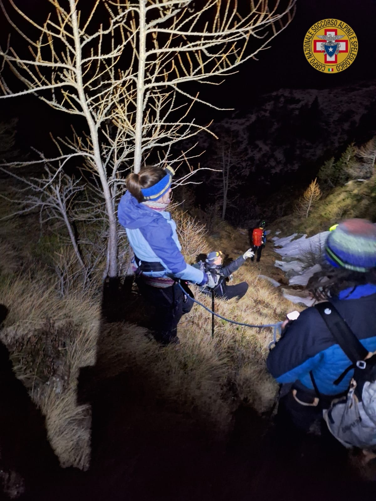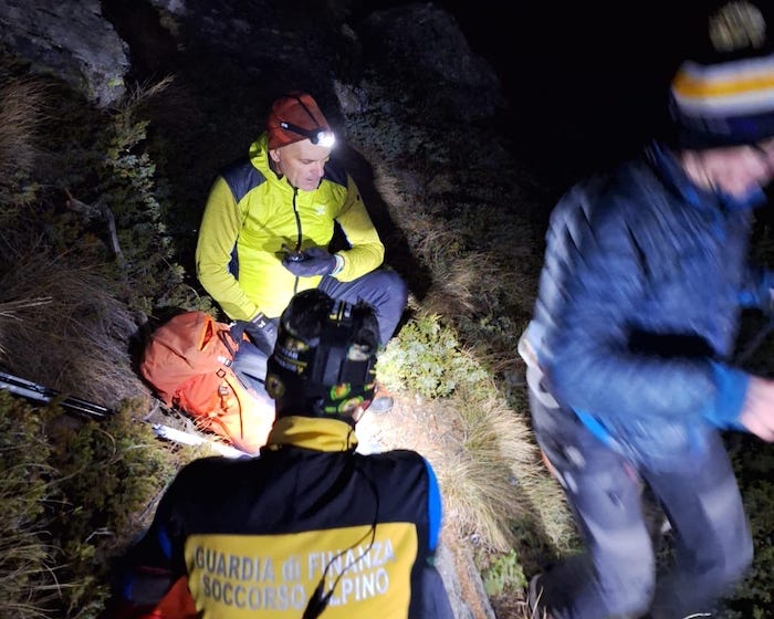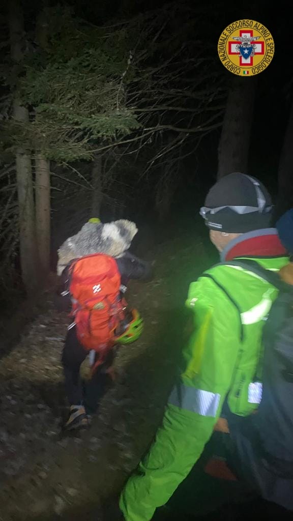 MACUGNAGA - 30-12-2023 -- Si è completata nel cuore della notte, intorno alle ore 2:40 il recupero della famiglia cecoslovacca di 4 persone più il cane, bloccata zona dell'Alpe Cicerwald sopra Borca dal sopraggiungere del buio. I volontari della stazione del soccorso alpino di Macugnaga e del Sagf, li avevano raggiunti già nel corso della tarda serata portando bevande calde e coperte e decidendo in un primo momento, per questioni di sicurezza, di far partire il recupero nella mattinata odierna. Ma la presenza nel gruppo di due adolescenti che avrebbero dovuto trascorrere la notte all'addiaccio, ha fatto propendere per un intervento immediato che s'è protratto per alcune ore nel buio completo. I 4 erano partiti dall'Alpe Cicerwald con l'obiettivo di raggiungere l'Alpe di Garda ma erano rimasti bloccati su una cengia da dove avevano allertato i soccorsi.